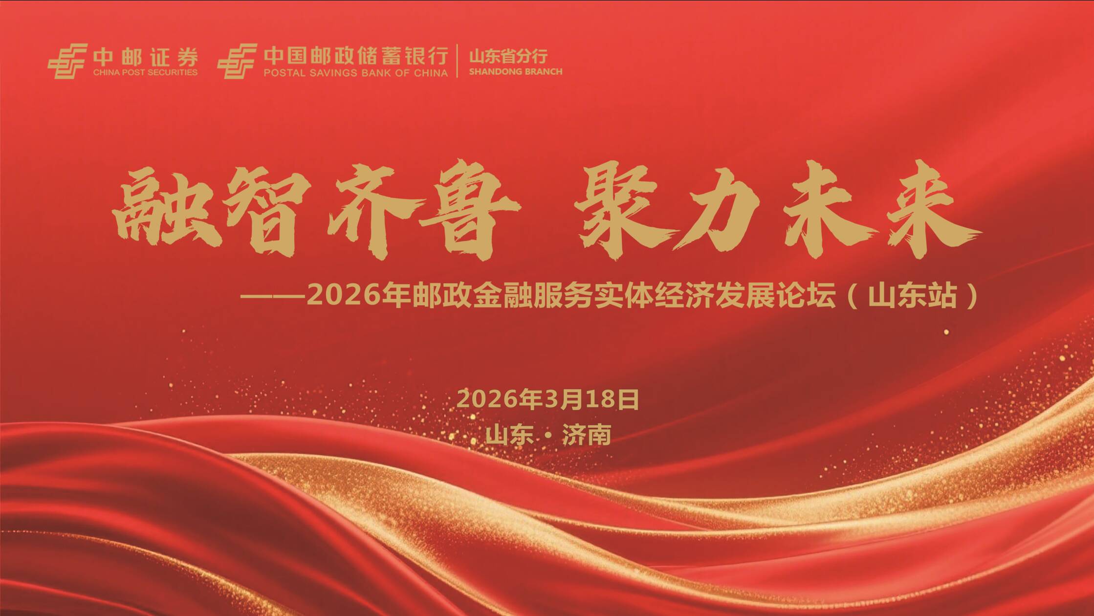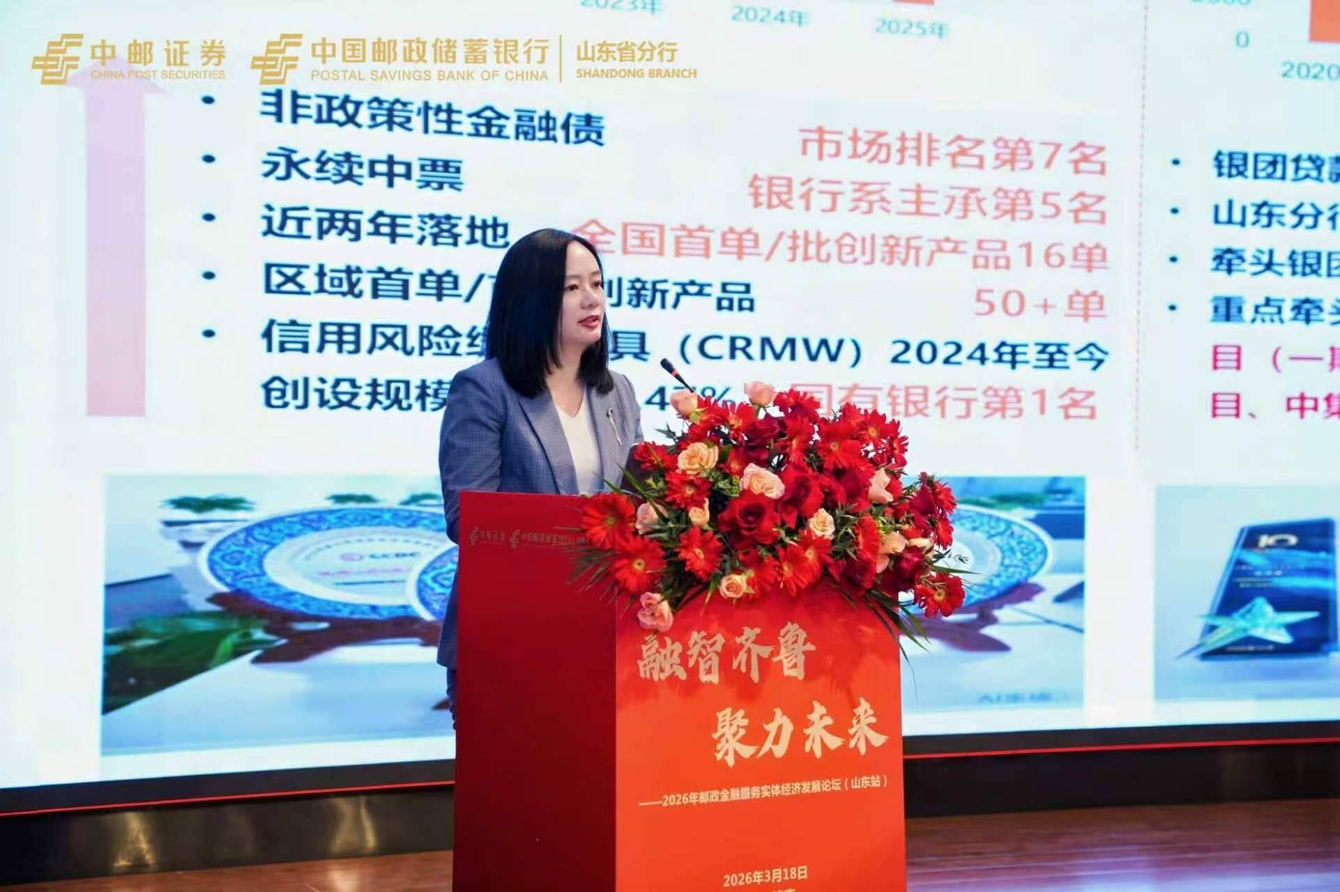 2026年3月18日,中邮证券有限责任公司与中国邮政储蓄银行山东省分行联合主办的“2026年邮政金融服务实体经济发展论坛(山东站)”在济南隆重举行。