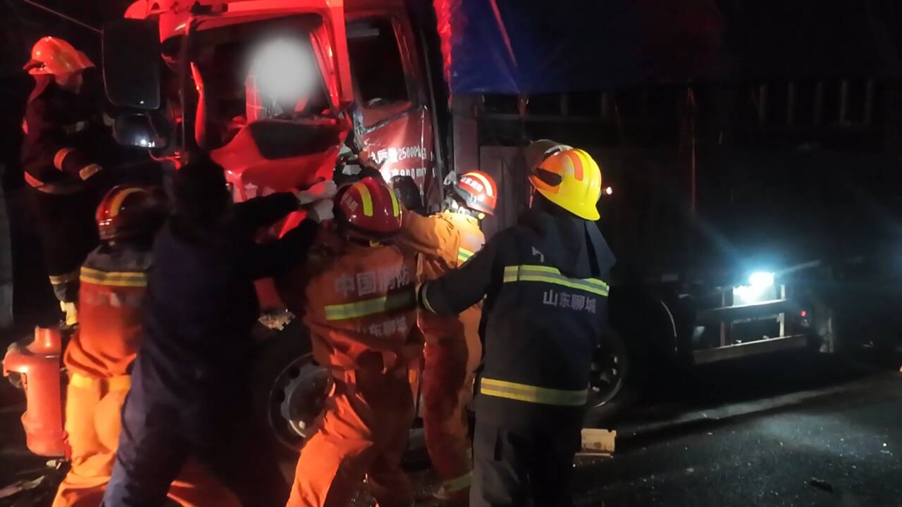 齐鲁网·闪电新闻3月19日讯 3月17日,聊城市莘县张寨镇发生一起交通事故,有人员被困。接到报警后,辖区武阳路消防救援站立即出动,赶赴现场救援。