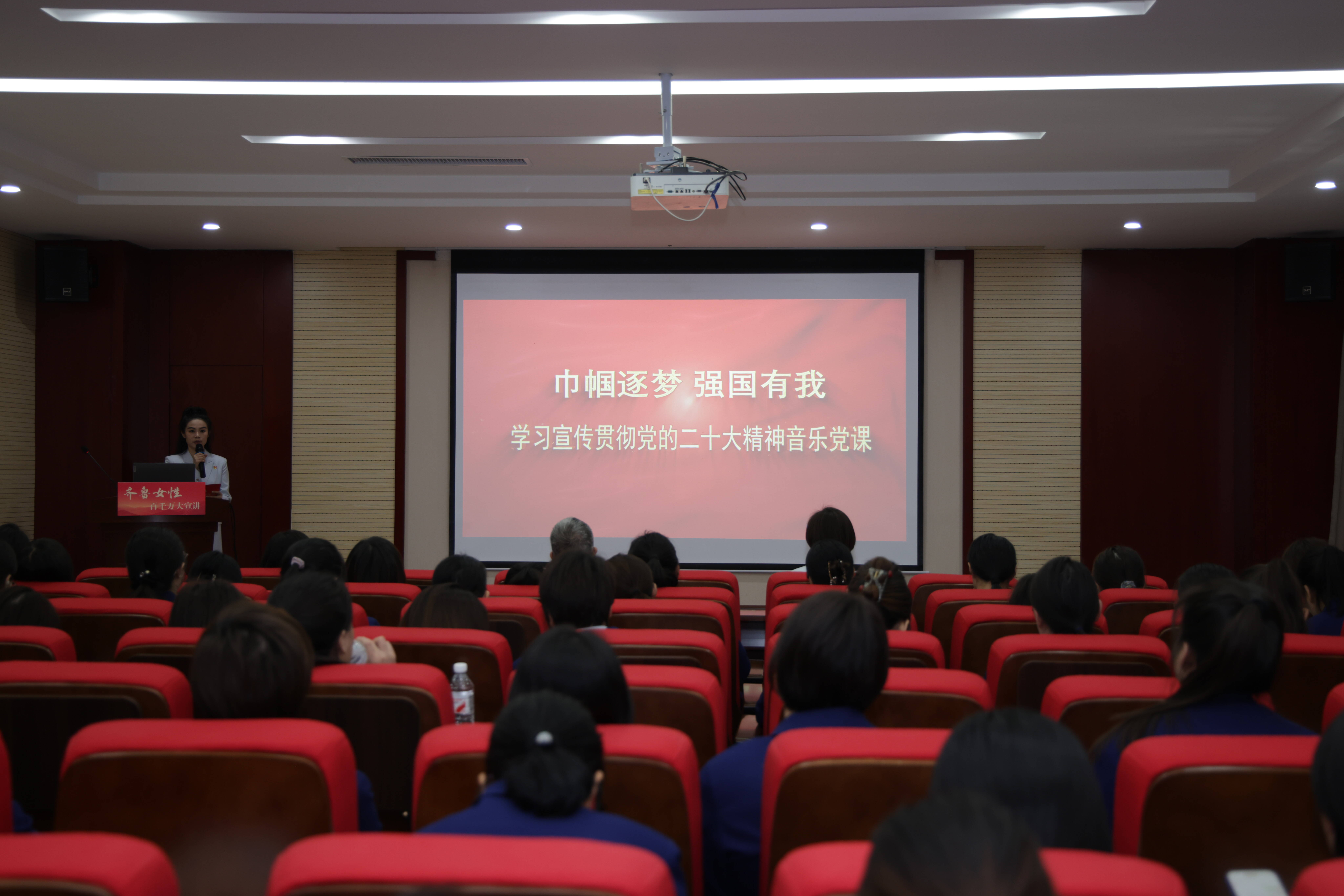 由山东文艺广播主持人贾晓婷宣讲的《巾帼逐梦 强国有我》音乐党课将熟悉的音乐旋律与巾帼奋斗故事相融,让巾帼奋斗精神在沉浸式宣讲中浸润心田,引导大家在榜样力量中感悟初心、勇担使命。