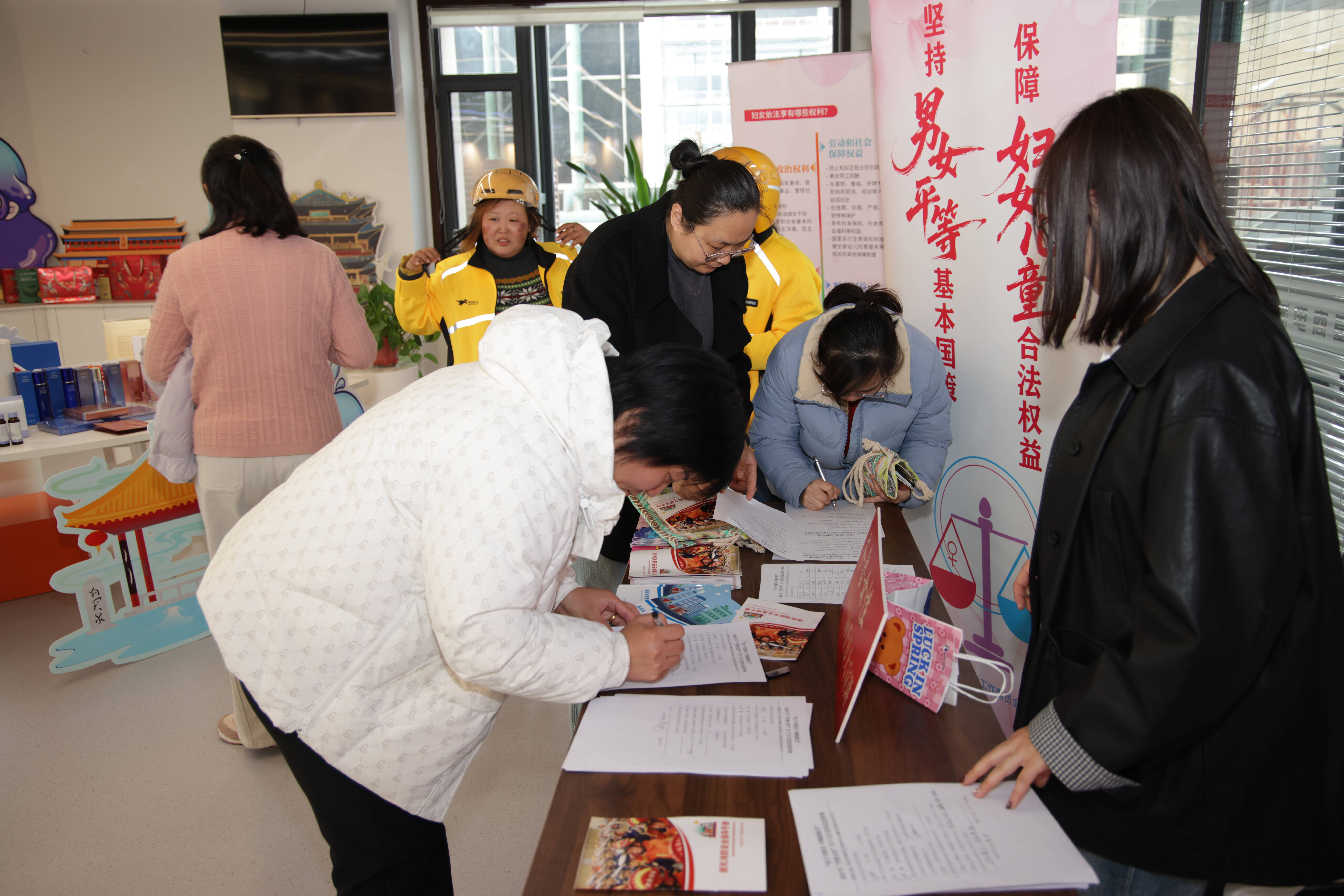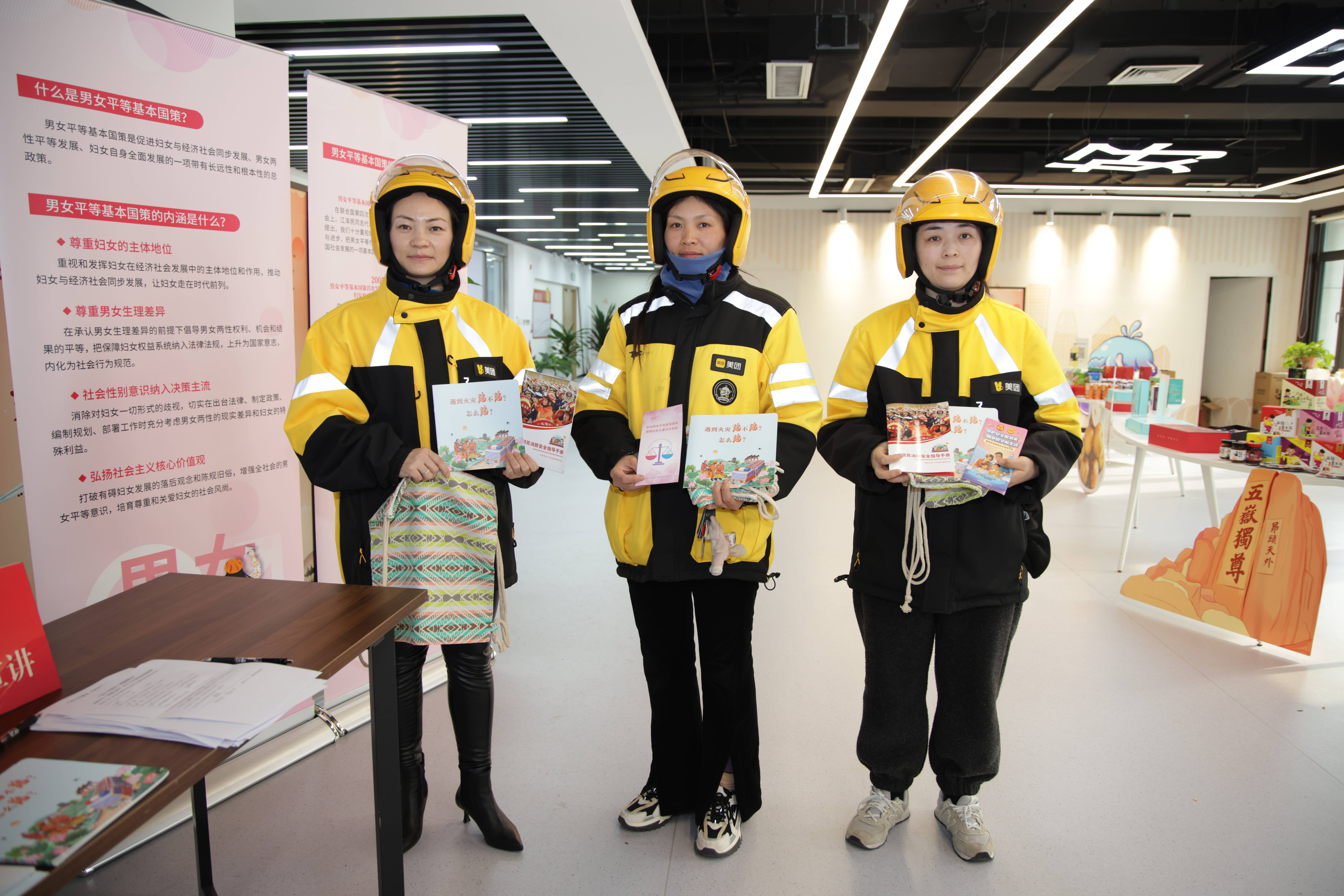 在济南市槐荫区泉城好品直播电商基地,工作人员向群众发放男女平等基本国策宣传材料,围绕国策核心内涵、妇女各项权利等进行细致解读,现场开展有奖问答,吸引大家积极参与,让国策知识变得可学可记、易懂易行,真正实现国策宣传入脑入心。