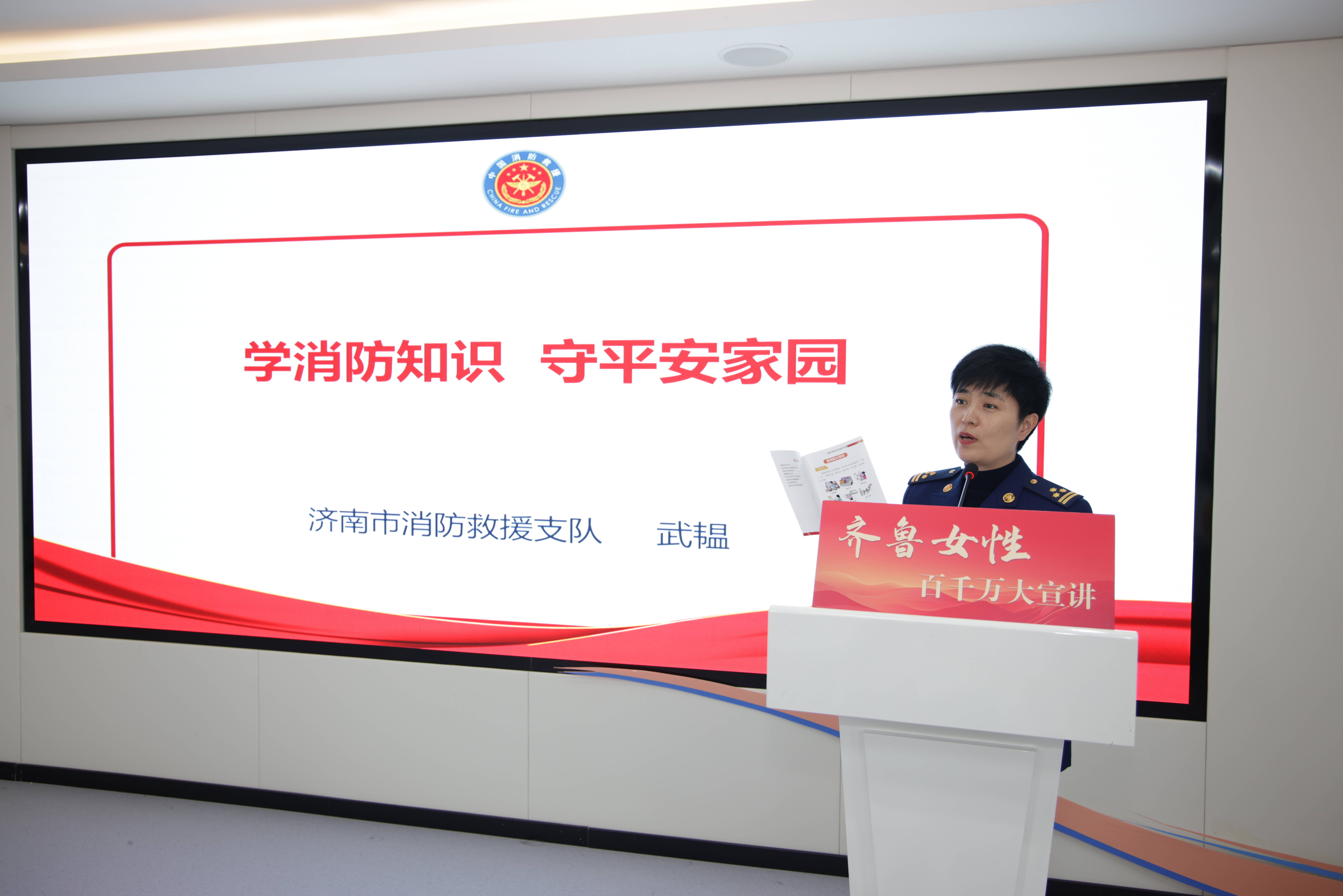 “请问‘三清三关’具体指什么?”随着提问响起,会场瞬间热闹起来,在场女性踊跃举手应答,“清走道、清阳台、清厨房,关火源、关电源、关气源”的回应声此起彼伏。这是济南市消防救援支队消防一级指挥长、高级工程师武韫开展《学消防知识 守平安家园》宣讲时的生动场景。武韫从火灾基本常识、消防设施识别切入,细致讲解火灾应急处置原则,并结合电商、外卖骑手等新兴领域女性的工作场景,针对性普及居民防火核心常识。互动环节中,她耐心倾听大家的应答,讲解好记的消防常识“三字经”,让消防安全知识入脑入心,切实提升了新兴领域女性的消防安全意识和应急自救能力。