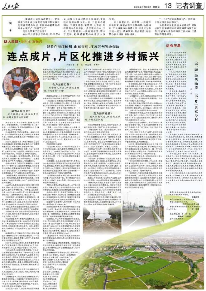 为何要片区化推进乡村振兴?成效如何?实施过程中有哪些难题待解?近日,记者深入青岛市和浙江杭州市、江苏苏州市等地探访。