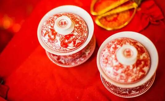 跨过火盆,便是最重要的“改口”环节了。大堂正中是四把带扶手的榆木椅,分成两组,背后挂一张象征长寿与忠贞的松鹤画轴。我和妻子坐在左侧,亲家两口在右侧,儿媳妇由我儿子领着走到我们面前,丝毫不犹豫地半跪在早备好的红布垫上。那一刻,屋里格外安静,所有人的目光都凝聚在这仪式上。整个流程庄重而顺畅,婚礼女管家用红漆托盘稳稳地端上两盏盖碗茶,送到儿媳妇面前,儿媳妇先双手捧起一盏,举过眉顶,声音清亮又带着一丝不易察觉的颤音,对我说道:“爸爸,您喝茶。”