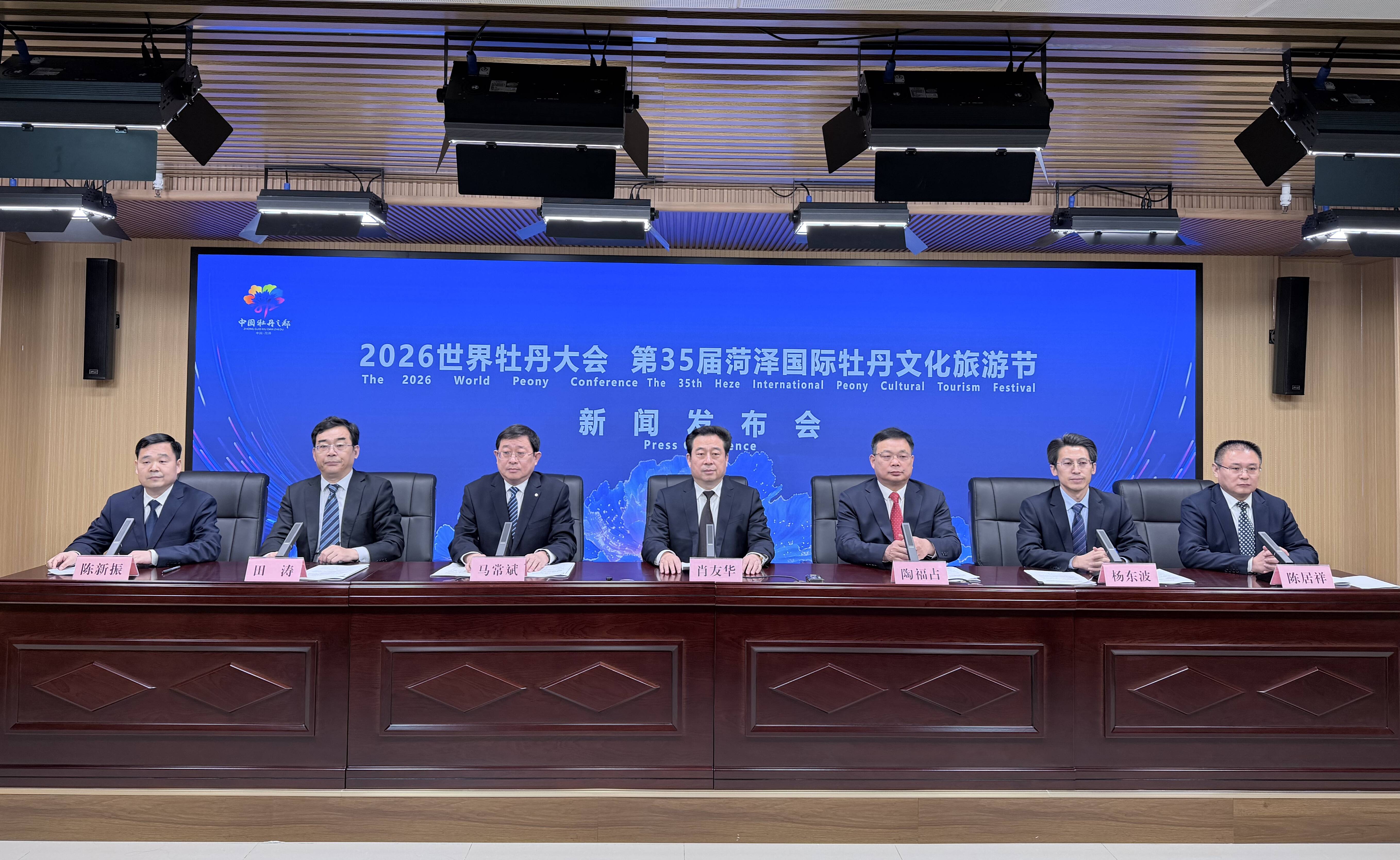 齐鲁网·闪电新闻3月20日讯 3月20日,菏泽市举行2026菏泽牡丹节会(2026世界牡丹大会、第35届菏泽国际牡丹文化旅游节)新闻发布会,菏泽市委常委、秘书长、统战部部长,2026菏泽牡丹节会组委会常务副主任肖友华;菏泽市委副秘书长、市牡丹发展服务中心主任陶福占;菏泽市交通运输局党组书记、局长马常斌;菏泽市文化和旅游局党组书记、局长杨东波;菏泽文化旅游投资集团有限公司党委副书记、总经理田涛;牡丹区委副书记陈居祥出席发布会,介绍活动安排、创新亮点等情况。
