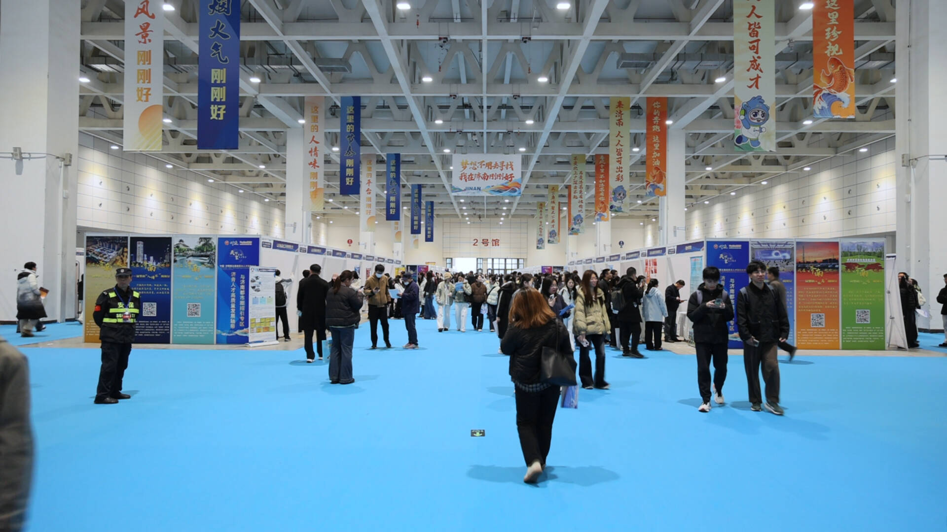 活力・济南发布专区,全方位展现城市的蓬勃朝气与发展机遇。舞台全天候不间断开展活动,主要设计“政策讲”宣贯,邀请“海右人才”政策宣讲团成员开展两场人才政策推介,深入解读济南市人才服务政策;“人才单位”推介,不同领域在济南扎根并取得成就的优秀人才讲述他们的济南故事、工作生活体验、城市认同感;“专家课”赋能现场授课,为求职者提供职业目标定位、行业趋势分析及个人优势评估等专业指导。“专家的指导让我豁然开朗,之前对职业规划很迷茫,现在终于有了清晰的方向,希望能在济南找到合适的岗位,实现自己的人生价值。”即将毕业的大学生张伟卿说道。