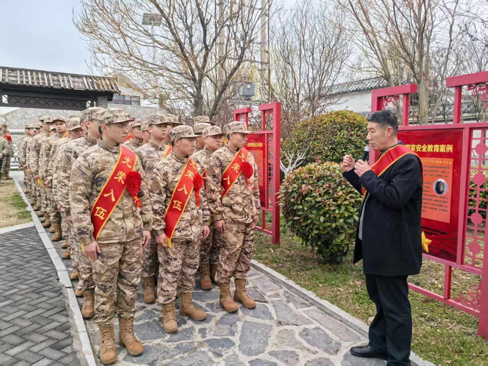 近日,山东省济宁市微山县隆重举行2026年国家安全宣传进军营暨新兵欢送大会,将国家安全教育与红色文化传承、新兵入伍欢送紧密结合,为即将奔赴军营的新兵送上一堂生动深刻的“出征第一课”,进一步凝聚军地同心、共护国家安全的思想共识,点燃爱国强军、从军报国的热血豪情。