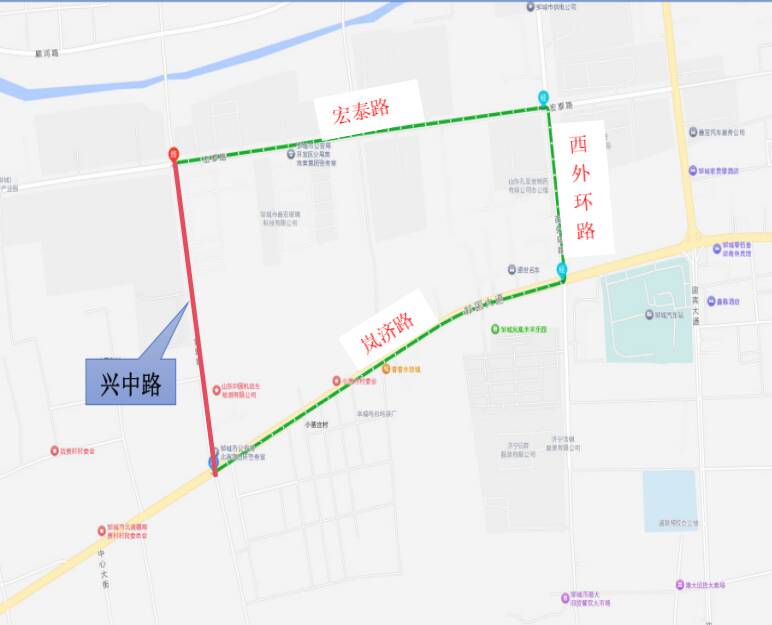岚济路——西外环路——宏泰路——兴中路。
