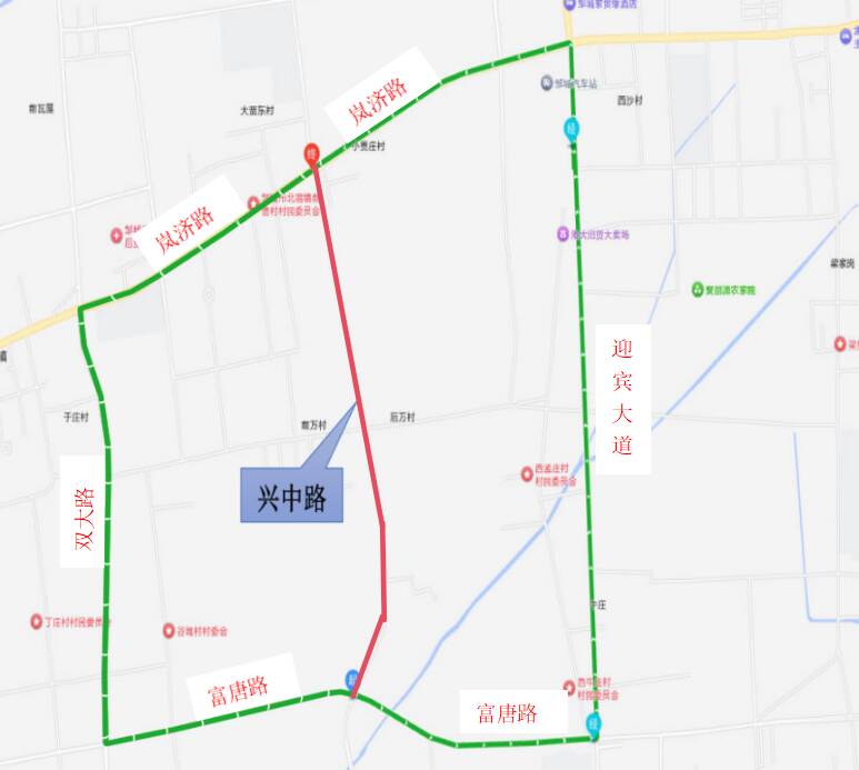 富唐路——迎宾大道——岚济路——兴中路。