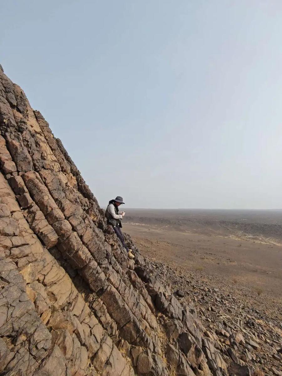 艰苦,是地质工作最真实的底色。沙特地处热带沙漠气候区,高温是常态,更是挑战。为了避开最灼热的时段,队员们每天清晨五点便整装待发。即便如此,白天温度仍常徘徊在37℃以上,夏季更是轻松突破40℃。热浪裹挟着每一寸空气,岩石烫得戴着手套才能触碰。紫外线强烈,大家不得不长袖长裤全副武装,汗水刚渗出就被干燥的空气“吞没”,只在衣服上留下一圈圈盐渍。水资源在这里极为珍贵,生活用水全靠海水淡化,连洗澡水都带着咸味。队员们笑称:“白天晒成干,晚上腌入味,再嫩的‘小鲜肉’也得变成‘老腊肉’。”