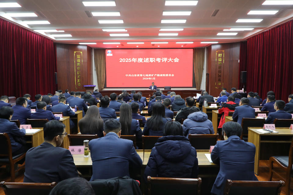 1月21日,山东省地矿局第七地质大队召开2025年度中层干部、机关工作人员考评大会,党委副书记赵辉主持会议并作总结讲话。领导班子成员、二级单位、机关科室负责人及干部职工代表共80余人参加会议。