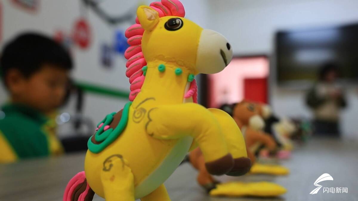 孩子们循着“揉面——塑形——装饰”的步骤,尽情挥洒想象力,打造独属于自己的骏马作品。有的复刻春晚吉祥物“骐骐”的模样,捏出带着古朴纹样的小马;有的为“骥骥”添上斑斓彩鬃,尽显童真趣味;有的让“驰驰”脚踏祥云,寄托对新年的美好憧憬。在老师们的悉心指引下,一件件稚拙可爱的作品纷纷诞生。青黑的“骐骐”、腾跃的“骥骥”、英武的“驰驰”、健壮的“骋骋”齐聚一堂,洋溢着浓浓的春节氛围。