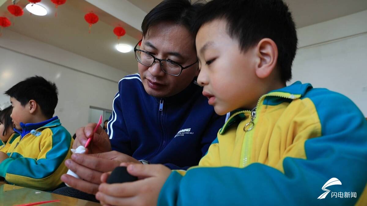 作为宁阳县泗店镇中心幼儿园的特色课程,面塑早已成为孩子们感知传统文化的重要载体。课堂上,许兴涛一边娴熟演示,一边细致讲解创作思路、面团配比、色彩调和与造型技巧。他手把手指导孩子们搓出细条,将灵动的“流云纹”精心贴在“马背”之上。