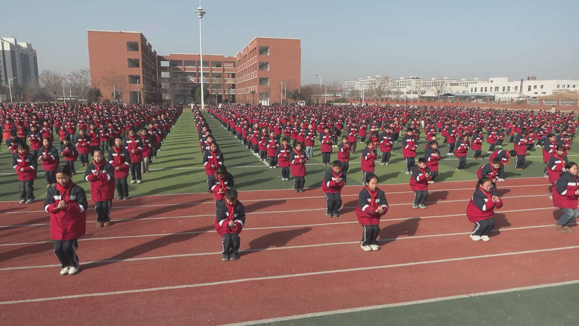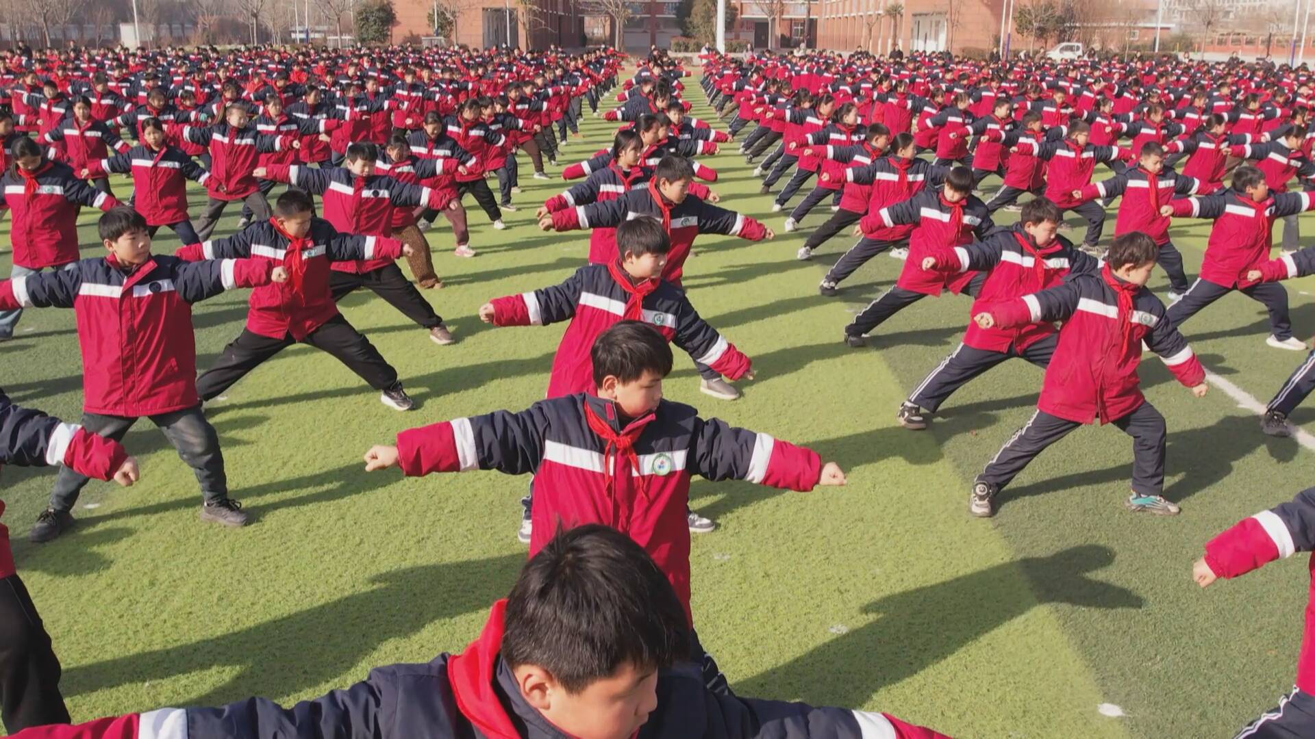 齐鲁网·闪电新闻1月25日讯 拳风阵阵,少年铿锵。在成武县汶上集镇中心小学的操场上,千名学生身着红衣,一招一式刚劲有力,将市级非遗单王庄梅花拳的精气神展现得淋漓尽致,既强健学子体魄,更让传统文化的种子在孩子们心中生根发芽。