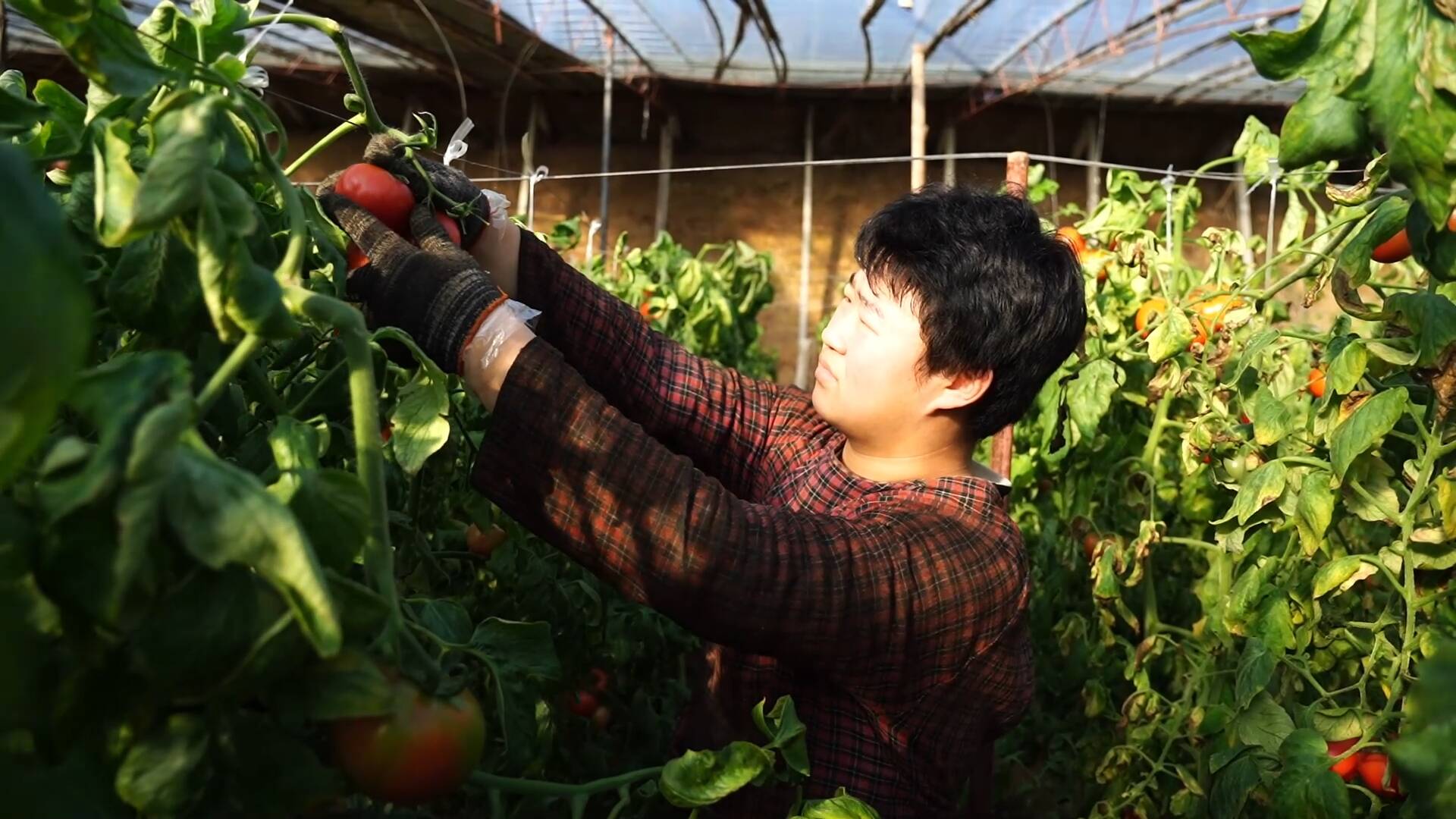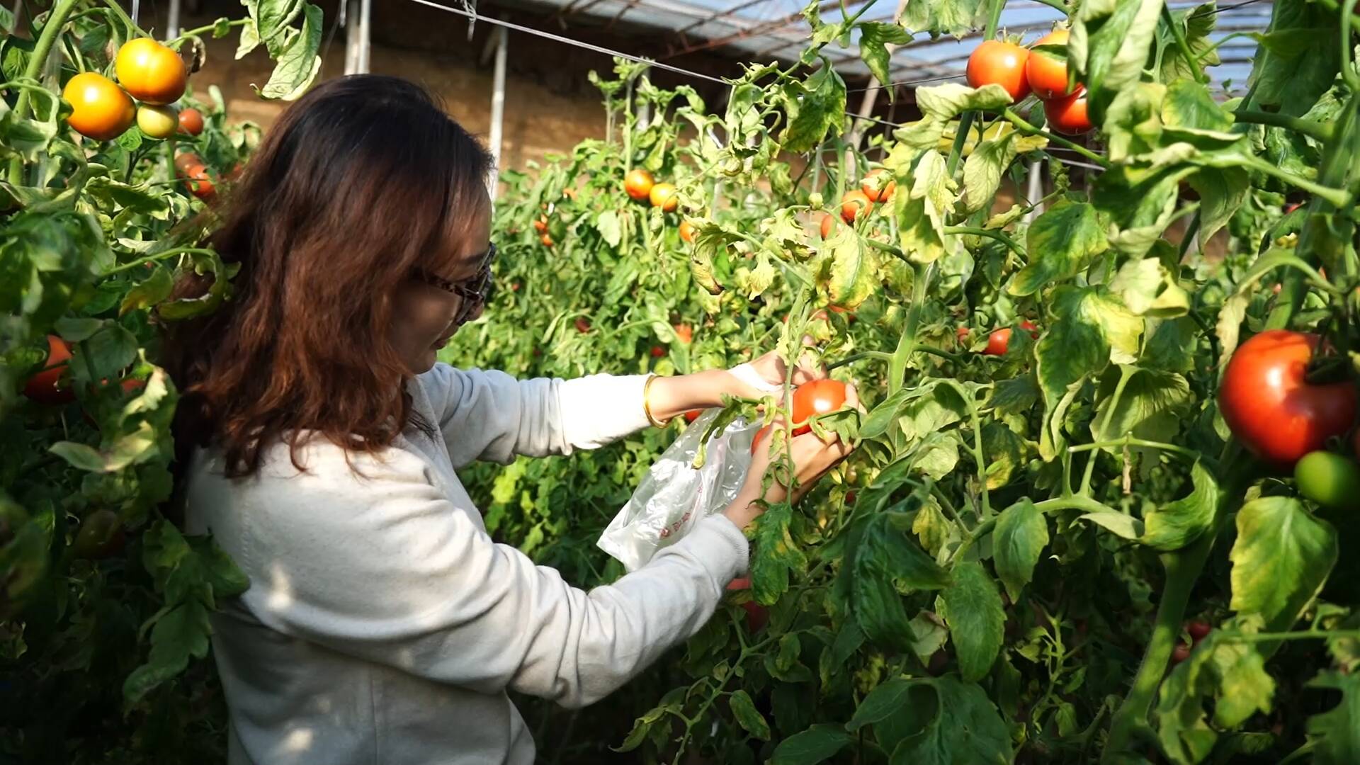 在大棚内除了游客采摘,农户也正忙着将西红柿分拣、装箱,现场一派繁忙景象。据了解,该基地种植的西红柿大棚,一年可收两季,今年产量喜人,预计总收入近二十万元。