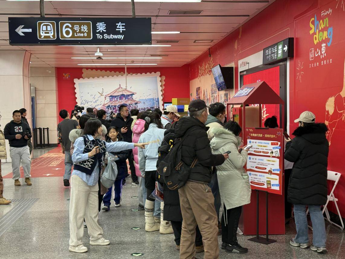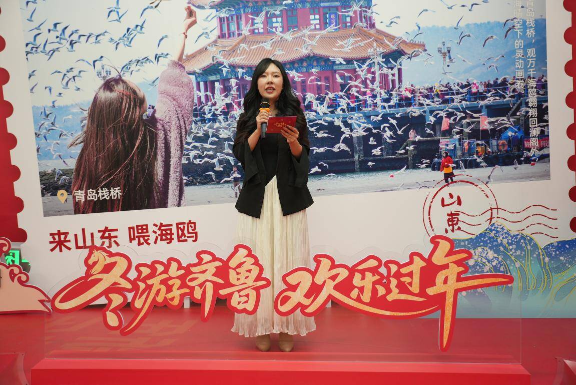 活动首日,环球旅行博主、北京文旅推介官芊与芊寻pula,京津冀文旅推荐官、朝阳美好形象代言人、抖音旅行博主欧丽Olivia分享了对山东冬季旅游产品的美好体验,青岛西海岸新区、淄博博山、德州齐河等山东宝藏小城现场开展推介,通过沉浸式体验、AI互动、非遗展示等形式,向往来乘客分享“冬游齐鲁”的独特魅力。