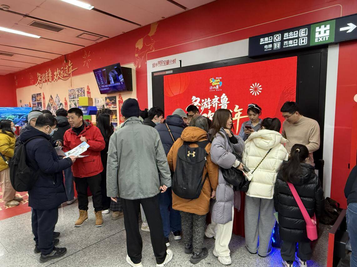 1月25日,“冬游齐鲁 欢乐过年”好客山东冬季旅游(北京)推广月活动在北京朝阳门地铁站启动。活动以沉浸式互动体验为核心,紧扣辞旧迎新时间节点,推出冬游齐鲁“赴冰雪之约”、“品暖心鲁味”、“逛宝藏小城”、“探匠心雅趣”、“享马年新意”主题冬季旅游产品,积极营造“冬游齐鲁 欢乐过年”的节日氛围,进一步提升山东文旅在京津冀客源市场的品牌影响力。