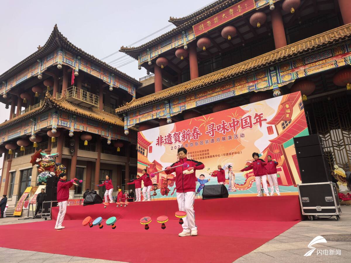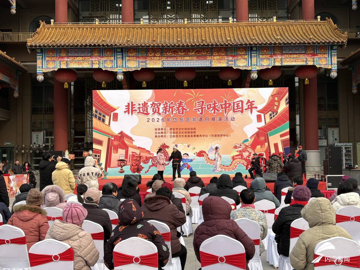 齐鲁网·闪电新闻1月30日讯 1月30日上午,“非遗贺新春 寻味中国年”2026年泰安市岱岳区非遗月展演活动在刘老根大舞台广场启幕。活动由泰安市文旅局指导,岱岳区文旅局主办,旨在推动非遗与文旅融合,让传统文化贴近群众生活。