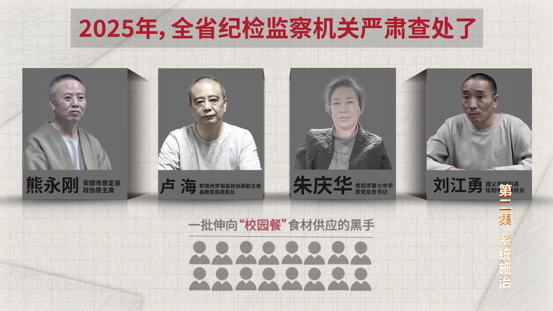贵州卫视2月2日晚播出电视专题片《为了人民群众——贵州正风肃纪反腐》第二集《系统施治》。