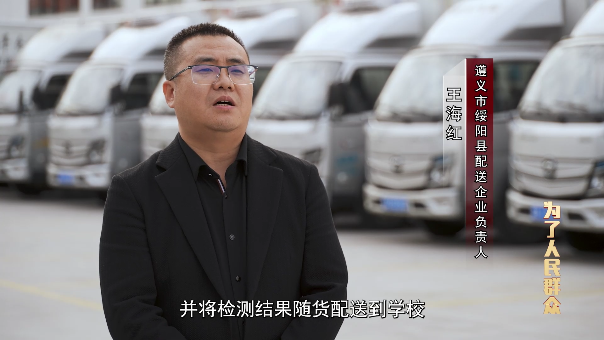 绥阳县配送企业负责人 王海红:我们配备了专业的技术人员,对供校食材进行农药残留、兽药残留、重金属含量等相关检测检疫,并将检测结果随货配送到学校。