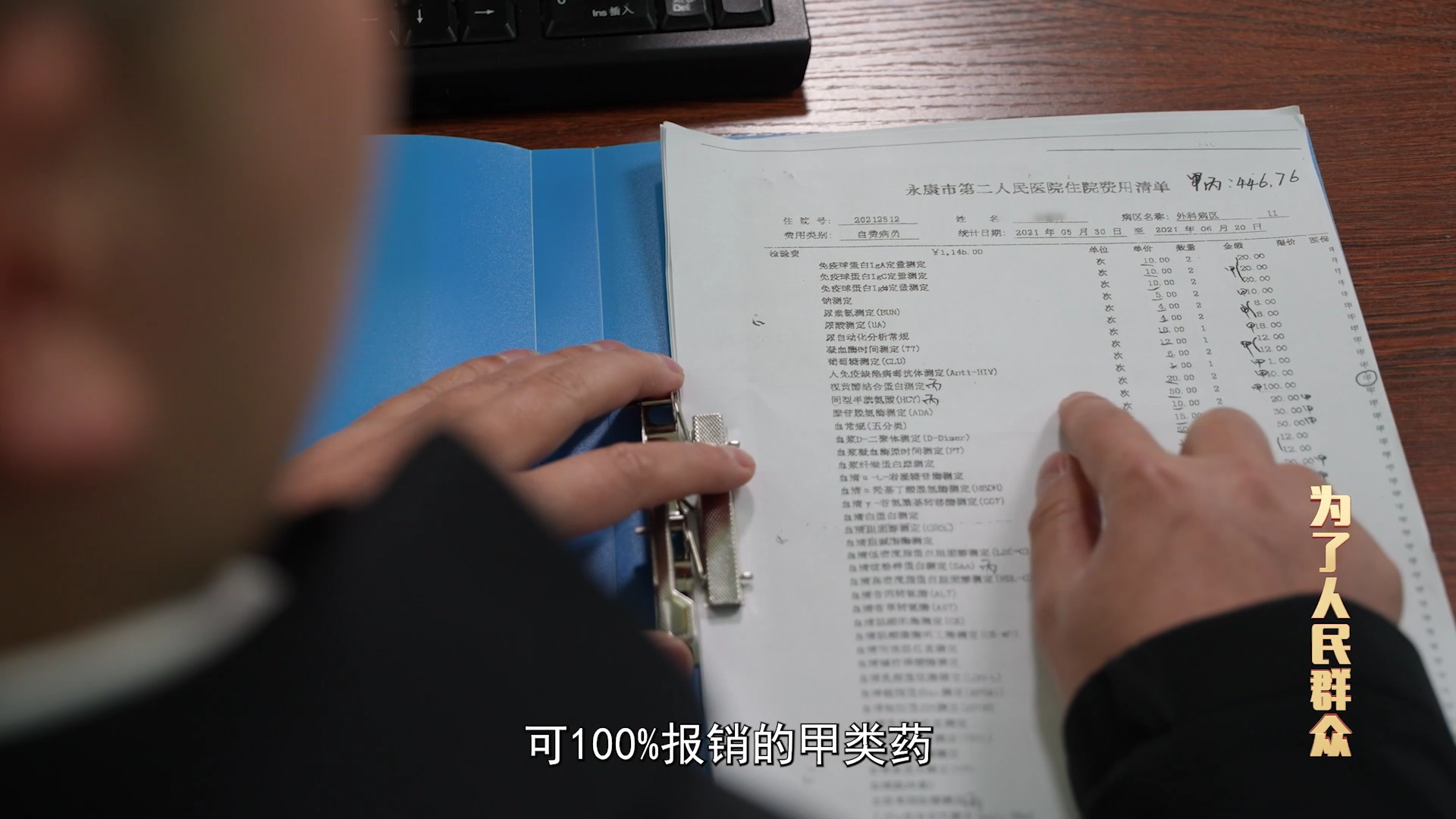 安顺市西秀区纪委监委工作人员 韦小凯:这份就是群众在申请异地医保报销时,周某万虚增报销费用的清单之一。单子上所列的这个药,属于丙类药不在报销范围内,而周某万却将其作为可100%报销的甲类药,录入到医保报销系统。