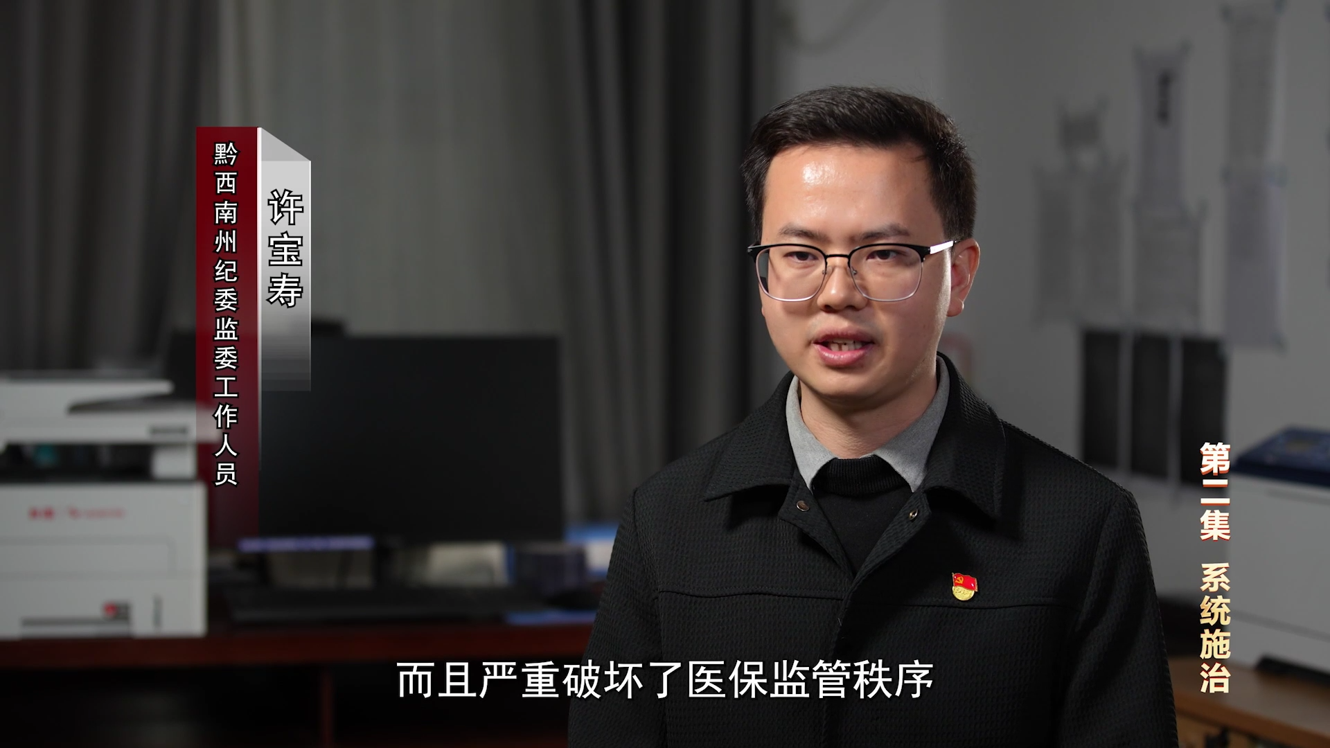 黔西南州纪委监委工作人员 许宝寿:李明对此不管不问,这样不仅会导致医保资金严重流失,而且严重破坏了医保监管秩序,代价极其沉重。