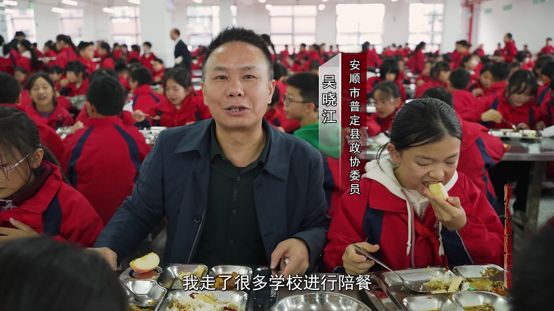 安顺市普定县政协委员 吴晓江:作为一个政协委员,我走了很多学校进行陪餐,我觉得它的饮食质量做得很好,品种搭配很齐全,营养很均衡。