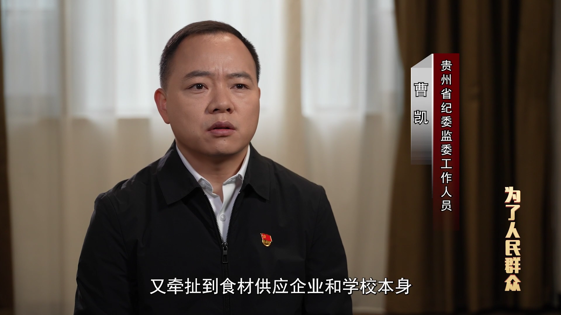 贵州省纪委监委工作人员 曹凯:校园餐食材供应涉及多家行业主管部门,又牵扯到食材供应企业和学校本身,环节多、程序复杂,导致一些别有用心之人,为了谋取私利,或在招投标过程中搞弄虚作假、走过场,或规避招投标程序,将供餐业务直接交由亲友承揽。