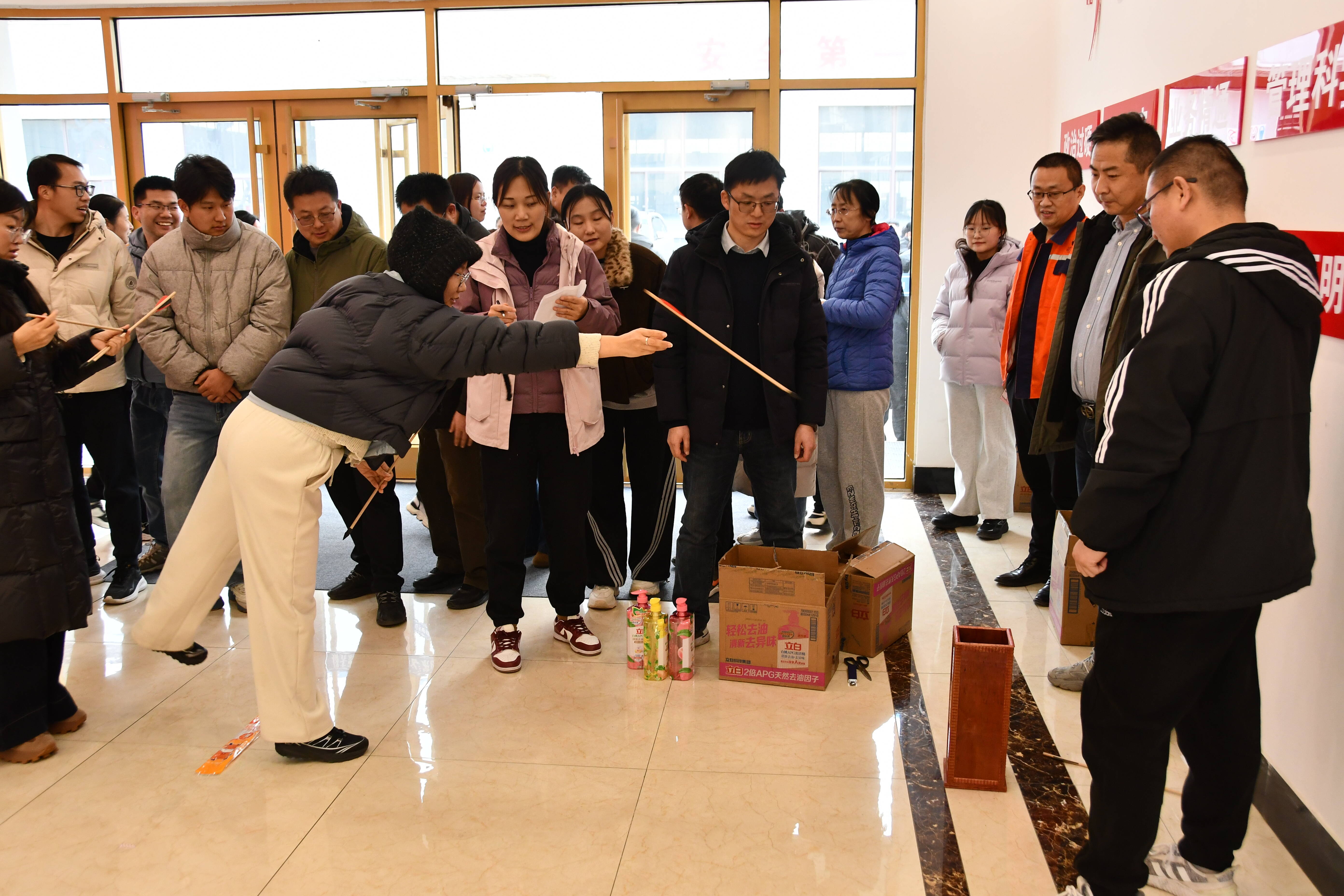 紧随其后的游园活动同样热闹非凡,极具传统色彩的套圈和投壶迅速吸引了大批职工上前一试身手,每每得中目标,便引来一片欢呼叫好,大家在尝试与挑战中充分感受着传统文化的魅力。现场还设置了许愿抽奖环节,承载着新年祝福的许愿签被随机抽取,寓意新年上上签,事事皆如愿。