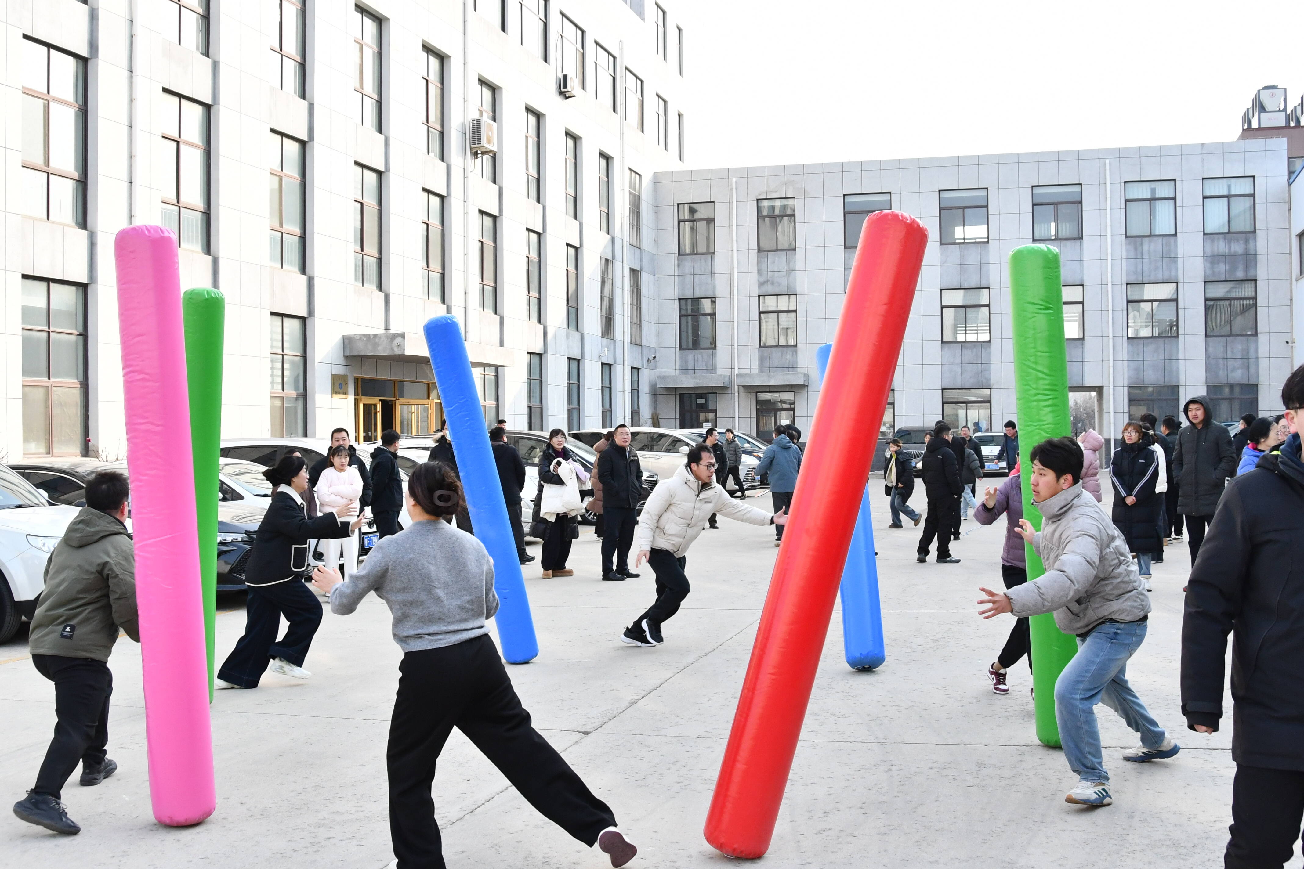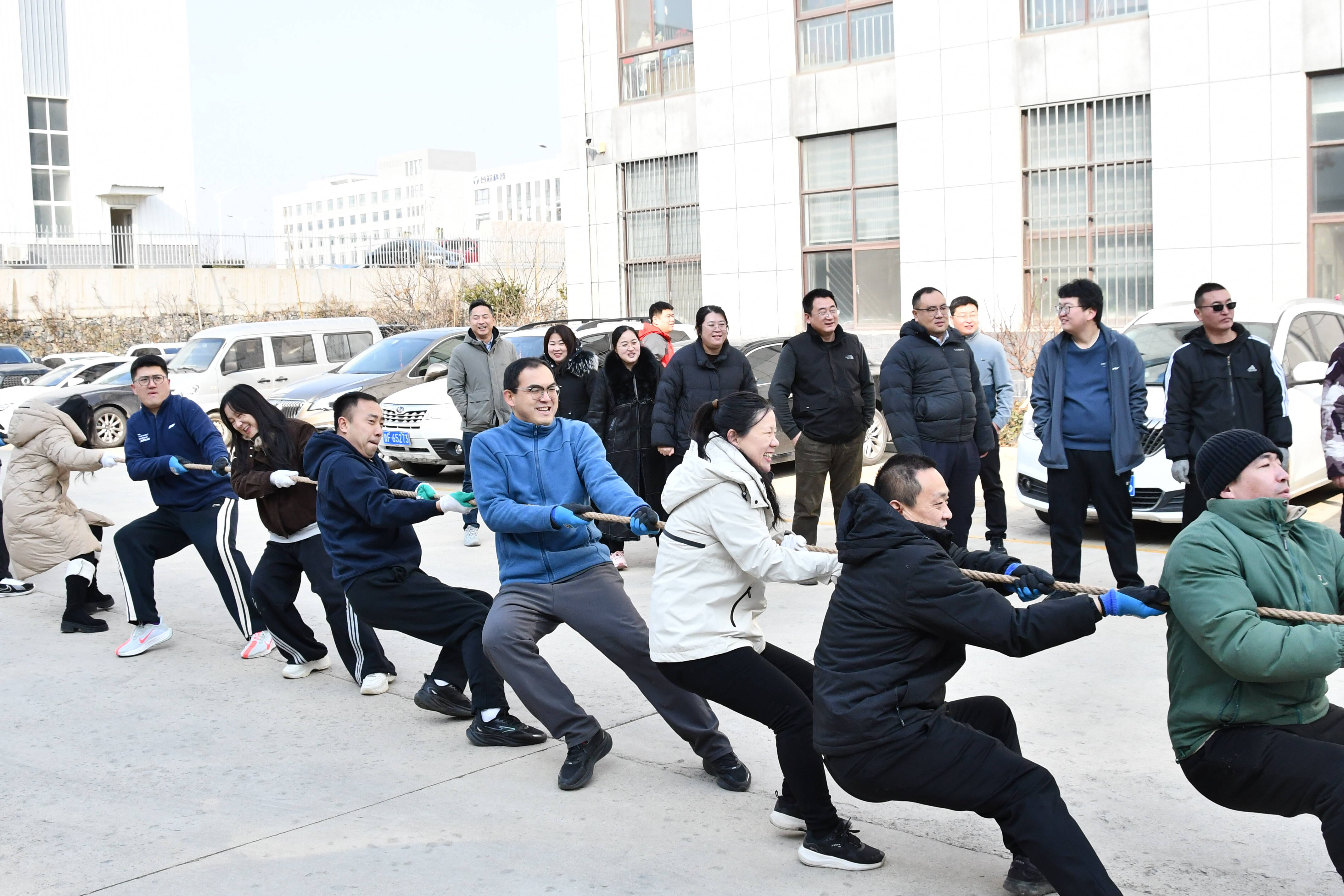 在趣味运动会的现场,既有展现个人能力的篮球投准和急速跳绳,也有考验团队默契的不倒森林、跳大绳以及拔河等项目。场上,队员们全力以赴;场外,观众呐喊助威,火热的场面展现出二七三人事争一流、团结奋进的精神面貌!