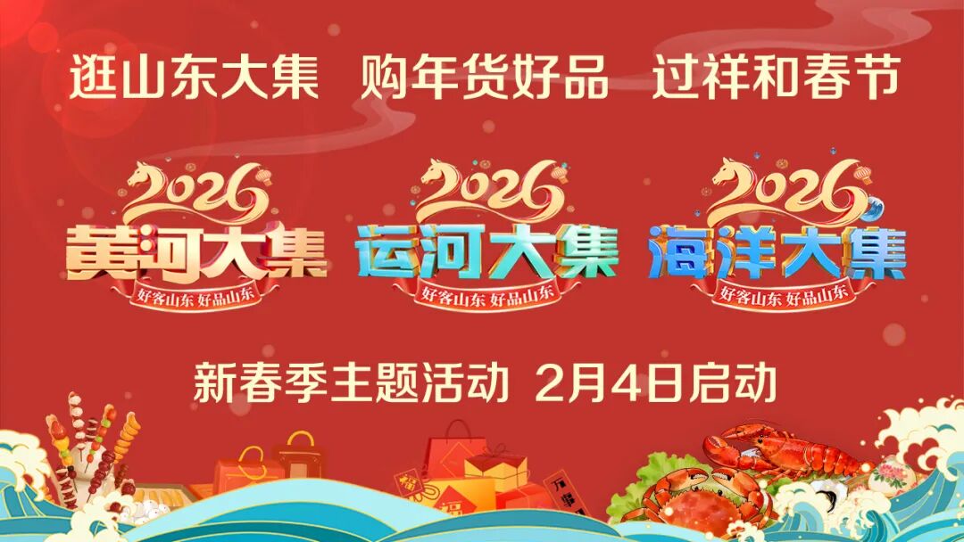 三地活动各具特色。菏泽东明“黄河大集”上演山东快书、鲁西南鼓吹乐、非遗大洪拳等特色节目,助力黄河文化传承与乡村振兴;德州天衢新区“运河大集”以舞蹈、非遗杂技、歌曲等展现运河底蕴,推动运河文化保护传承走深走实;烟台莱山区“海洋大集”融合胶东民俗与海洋风情,御医黄元御后人黄琪惠携手网络达人跨界推介烟台好物,凸显“海洋大集”独特魅力。此外,活动现场还举办民俗展演、非遗展示、美食品鉴、家居焕新等特色活动,并集中展销当地名优特产、老字号产品、地理标志农产品及特色手工艺品,聚力打造一批标志性、沉浸式消费场景,切实推动农村产品产销对接、拓宽销售渠道,为城乡居民提供丰富的休闲消费选择,真正实现“农村产品卖得出、城乡居民有去处”,让消费市场热起来、百姓生活乐起来。 2022年12月,山东依托乡村大集和线上平台策划启动“黄河大集”,根据四季消费特点策划不同主题,采取“宣传推介+线上带货+线下大集”的方式,集中展示齐鲁大地民俗节庆、好品好物,拉动居民消费,助力乡村振兴。2024年和2025年,为推动黄河文化、运河文化、海洋文化传承创新,山东将活动覆盖范围进一步扩大,动员基层、社区、村居、文化场所等广泛参与,在全省各地组织举办“黄河大集”“运河大集”“海洋大集”主题活动,持续扩大“好客山东”“好品山东”“活力山东”品牌影响力。此次启动活动,标志着2026山东省“黄河大集”“运河大集”“海洋大集”新春季主题活动全面启动。活动以“逛山东大集 购年货好品 过祥和春节”为主题,坚持全域联动、全业态融合,一体推进“文、体、卫、教、农、商、展、游、传”等具体活动落地。(沿海七市广电主持人化身“七仙女” 花式推介山东大集)