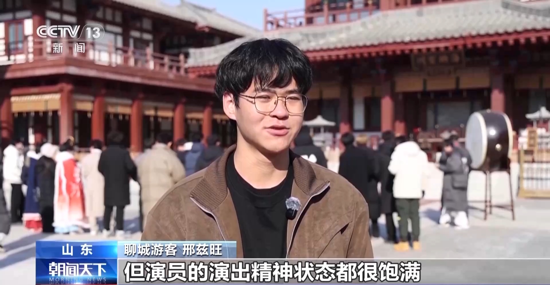 聊城游客邢兹旺:虽然天气比较寒冷,但演员的演出精神状态很饱满,也带我参与了一番,体验感挺不错的。