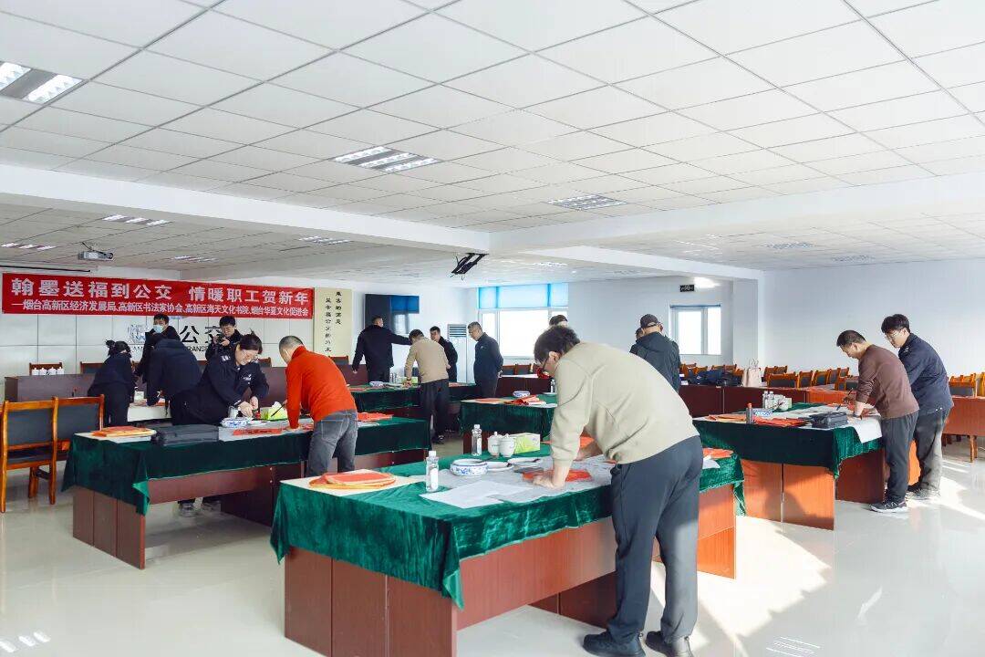 2月3日下午,烟台市公交集团高新区有限公司四楼职工书屋内暖意融融、翰墨飘香,由烟台高新区工委管委办公室、经济发展局主办的“迎春送福进万家”活动在此温情启幕。多位书法名家齐聚一堂,挥毫泼墨送祝福,为公司职工们提前送上浓浓的新春问候与美好期许。
