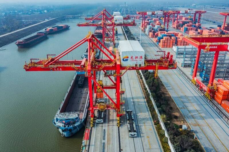 此次单月突破5万标箱,是龙拱港高质量发展势能的集中迸发,它并非孤立的数据增长,而是建立在2025年全面跃升的坚实基底之上。回顾过去一年,龙拱港交出了一份成色十足的答卷:全年集装箱吞吐量突破38万标箱,增幅领跑区域;成功打通“甘肃-龙拱港”化肥专列等通道,将经济腹地纵深拓展至西北;依托“铁路+海运”无缝衔接的多式联运体系,为“济宁制造”量身定制出海快车道,助力本土企业平均降低物流成本约10%。港口凭借在智慧建设、绿色运营方面的卓越表现,荣膺中国港口协会科学技术一等奖、山东省交通运输科技奖特等奖等多项重磅荣誉,并入选工信部信息技术应用创新典型案例。