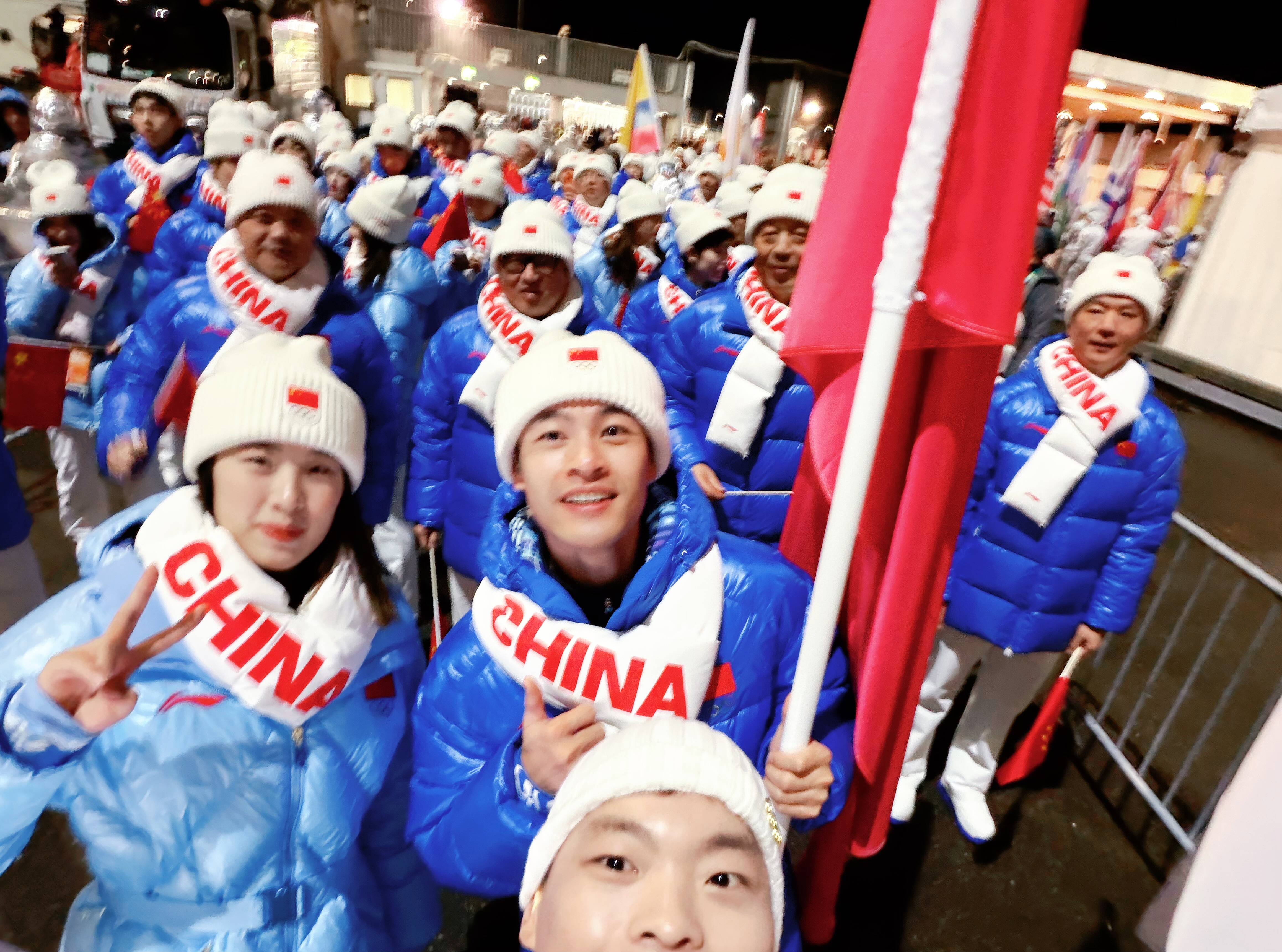 宋天成是米兰冬奥会开幕式上的志愿者,他表示:“我是奥林匹克旗旗手,刚才在路上的时候,看到了我们中国体育代表团两位旗手宁忠岩和张楚桐,我也跟他们合影了。当时心情特别激动,因为我是来自江苏扬州,看到我们国家运动员和旗手,我非常激动。”