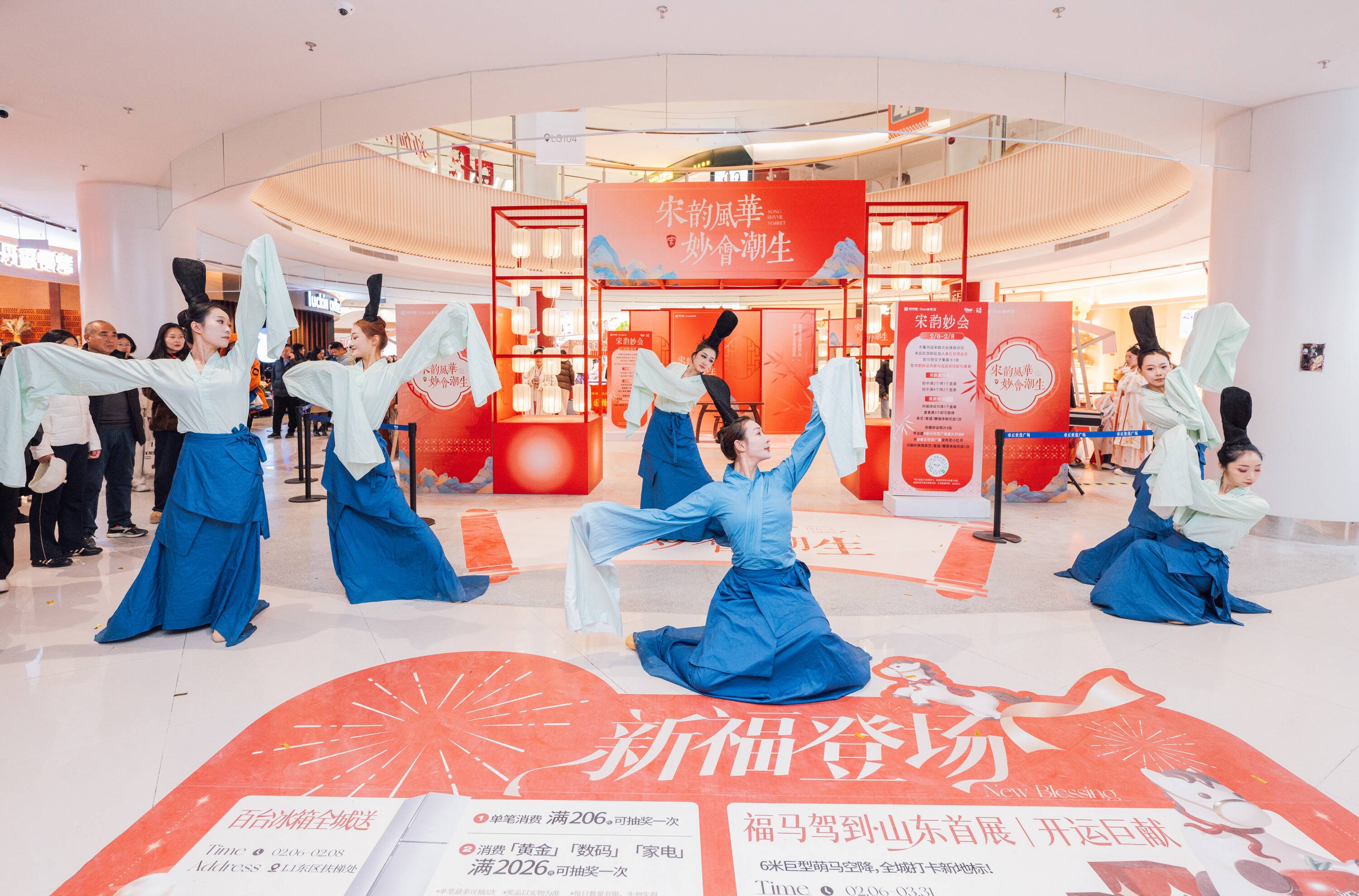 以「马上有福」山东首展为核心,巨型萌马装置成为打卡焦点。「宋韵妙会」与「新福百戏」 剧场让传统文化焕新体验,「开新音乐节」及独创的“清照电音派对”则用音浪点燃夜晚,外广场的「篝火晚会」与「随机舞蹈」派对更精准触达多元圈层,持续引爆社交热度。