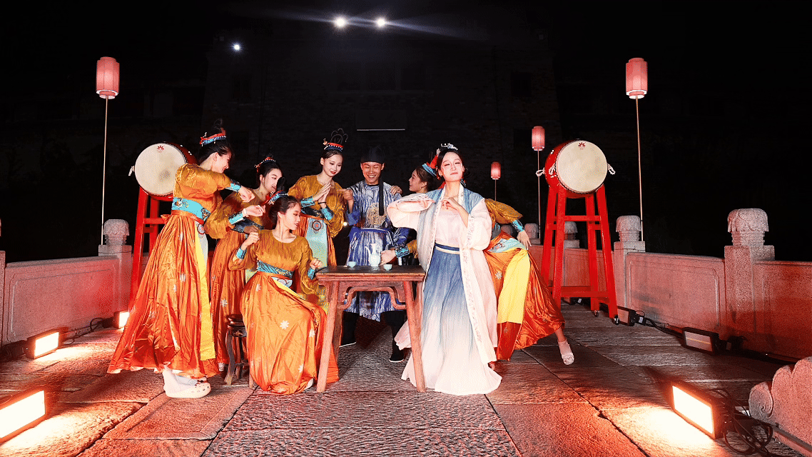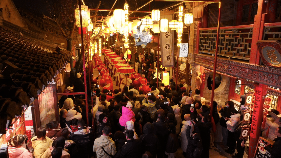 宋韵舞蹈《步步生花》《藕花仙渡》以泉为形、以乐为韵,舞者舒袖回眸间,尽显东方雅韵。《明鼓·迎春》以铿锵鼓点敲响新春吉运,《易安诗会》则以李清照诗词为魂,引领游客穿越千年,共品词中意境。更有《梦华·非遗年》大型巡游,荟萃南北非遗精粹,以行进式演艺呈现震撼视听的节庆盛宴。