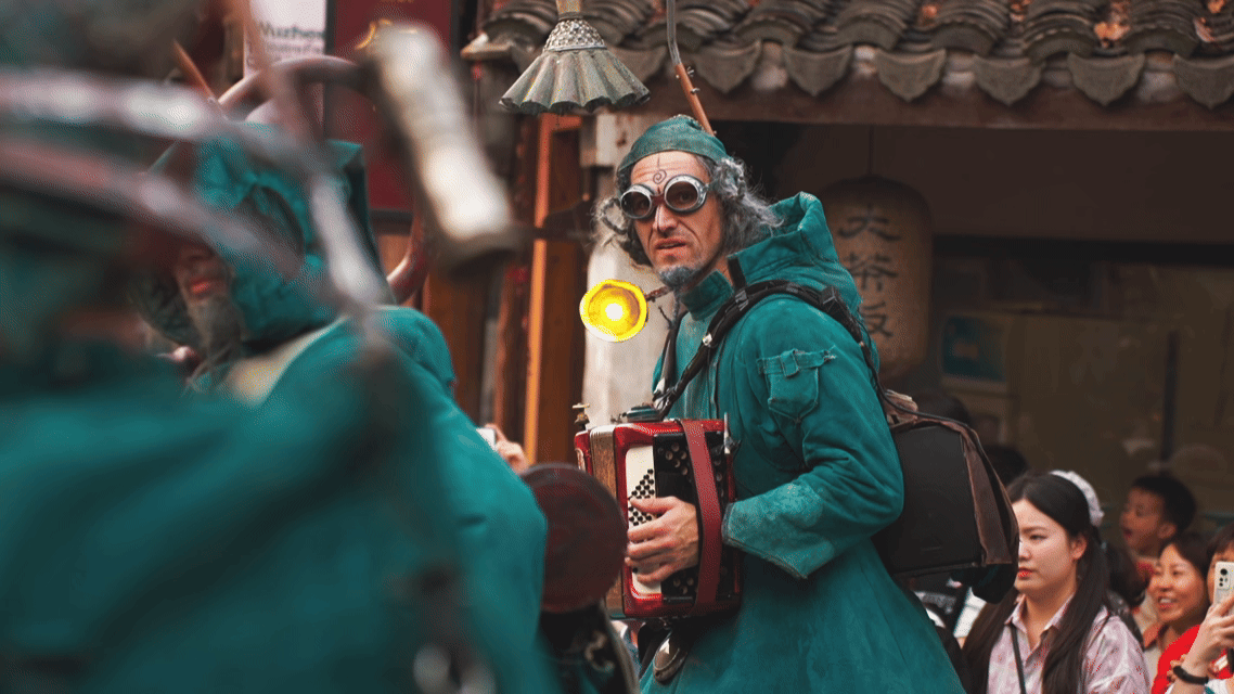 “龙马秀”以机械美学重塑东方神龙,喷烟吐雾、光彩流动,演员与装置融为一体,带来震撼的街头演出。“花木兰”“绿野仙踪”“拯救疯帽子”等巨型高跷人偶走下舞台,走入人群,实现零距离互动。法国赛莱剧团带来的《预言》更以北欧吟唱、蒸汽朋克与高跷音乐剧,营造出穿越时空的航海梦境,让游客在街头转角,便能与世界级的公共艺术相遇。