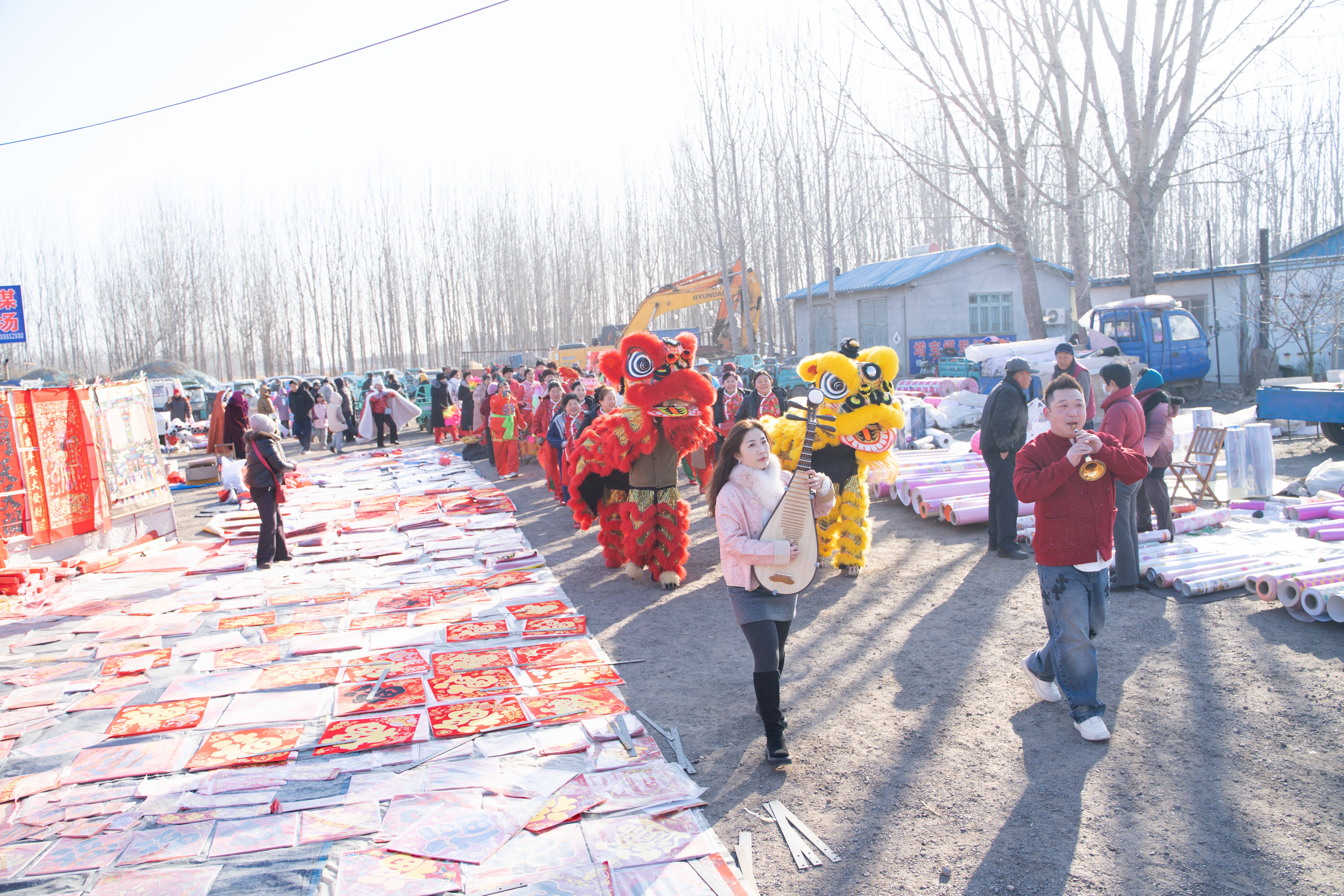 上午九时,由唢呐、琵琶和舞狮引领的秧歌队,沿着集市主街穿行而过。彩衣飘动,鼓点铿锵,所到之处,引得群众阵阵欢呼。“专程带孩子来感受年味儿,这才是春节该有的样子!”从胶州城区赶来的市民刘佳伟一家兴奋地告诉记者。