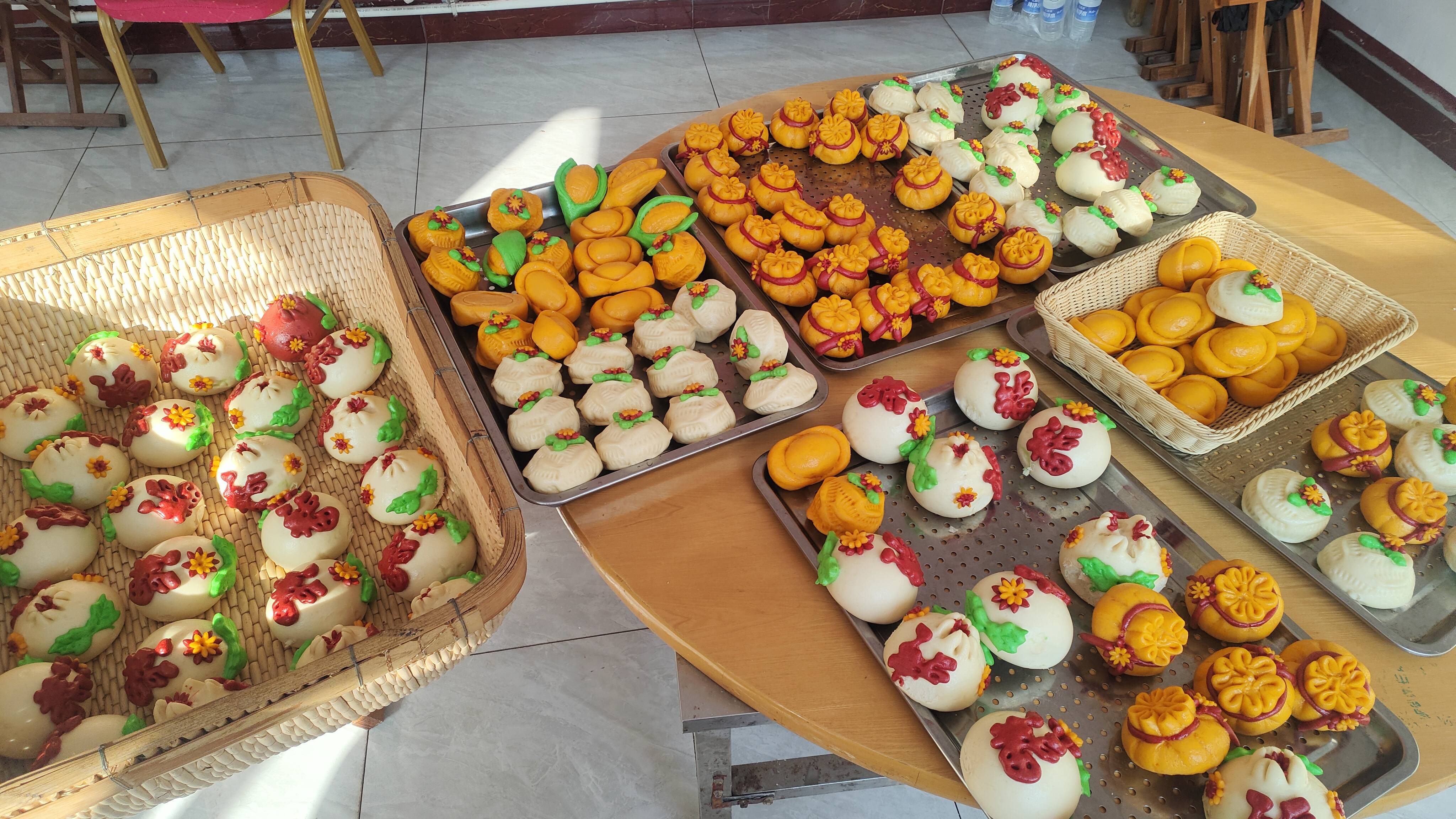 经过近两小时的精心创作,一个个造型别致、寓意吉祥的花样面点新鲜出炉,既有象征五谷丰登的玉米馍、承载福气满满的福袋馍,也有寄托美好祝愿的石榴/元宝样式,每一件作品都饱含着对新春的期盼与对生活的热爱。