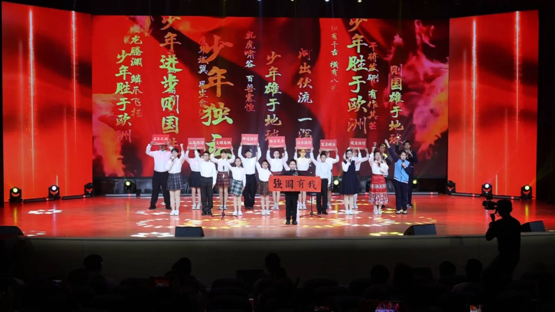 活动在全体“新时代好少年”激昂合唱《少年中国说》的歌声中达到高潮,“龙象之城、山海潍坊,文明高地、耕读潍坊,物阜民丰、活力潍坊,宜居颐养、健康潍坊。强国有我!强市有我!”铮铮誓言响彻全场,充分表达了潍坊少年立志报国、建设家乡的豪情壮志。