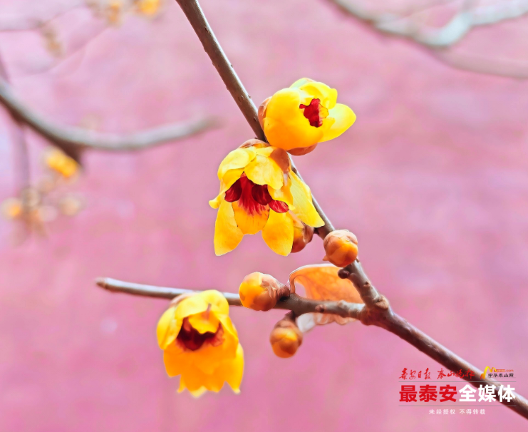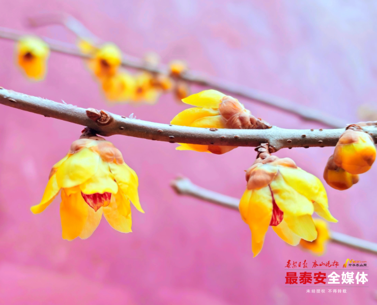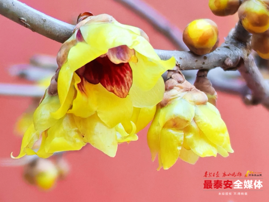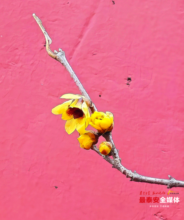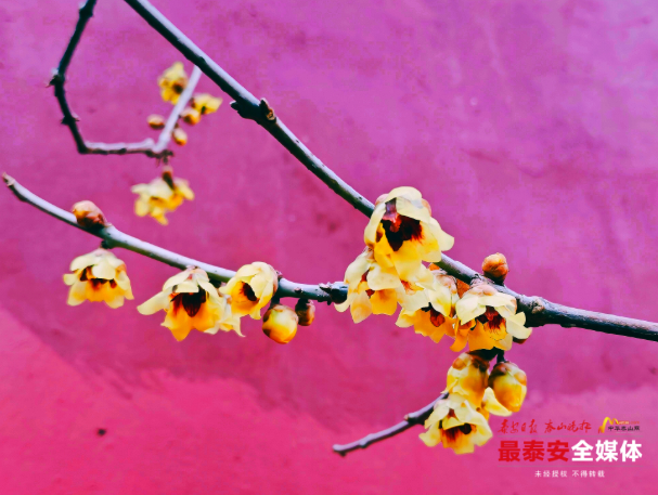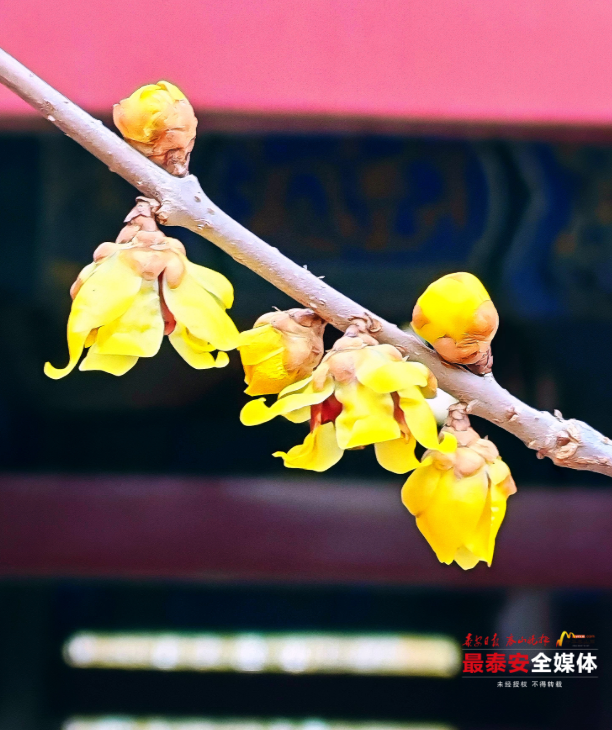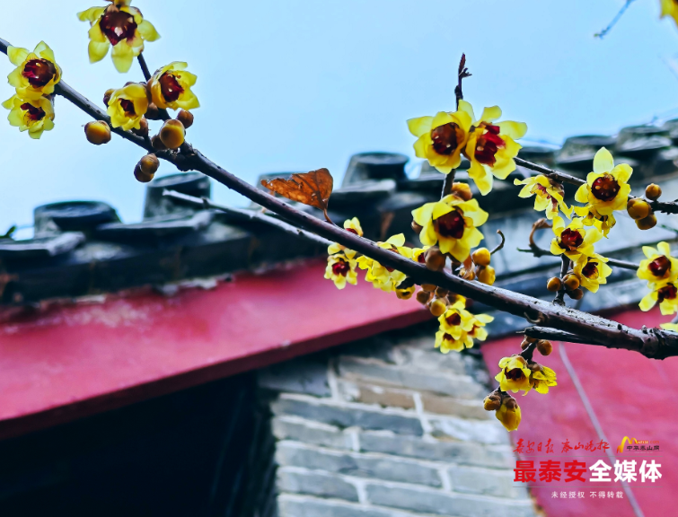 近日,泰山斗母宫听泉山房南侧的檀香蜡梅凌寒绽放,为这座古老的殿宇绘就了一幅冬日限定的“中式美学画卷”。