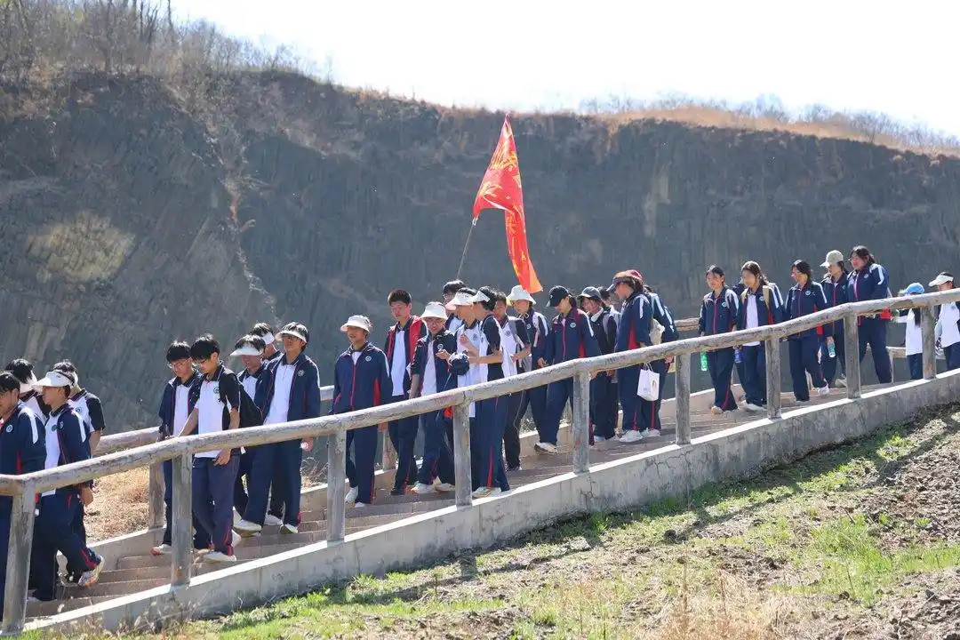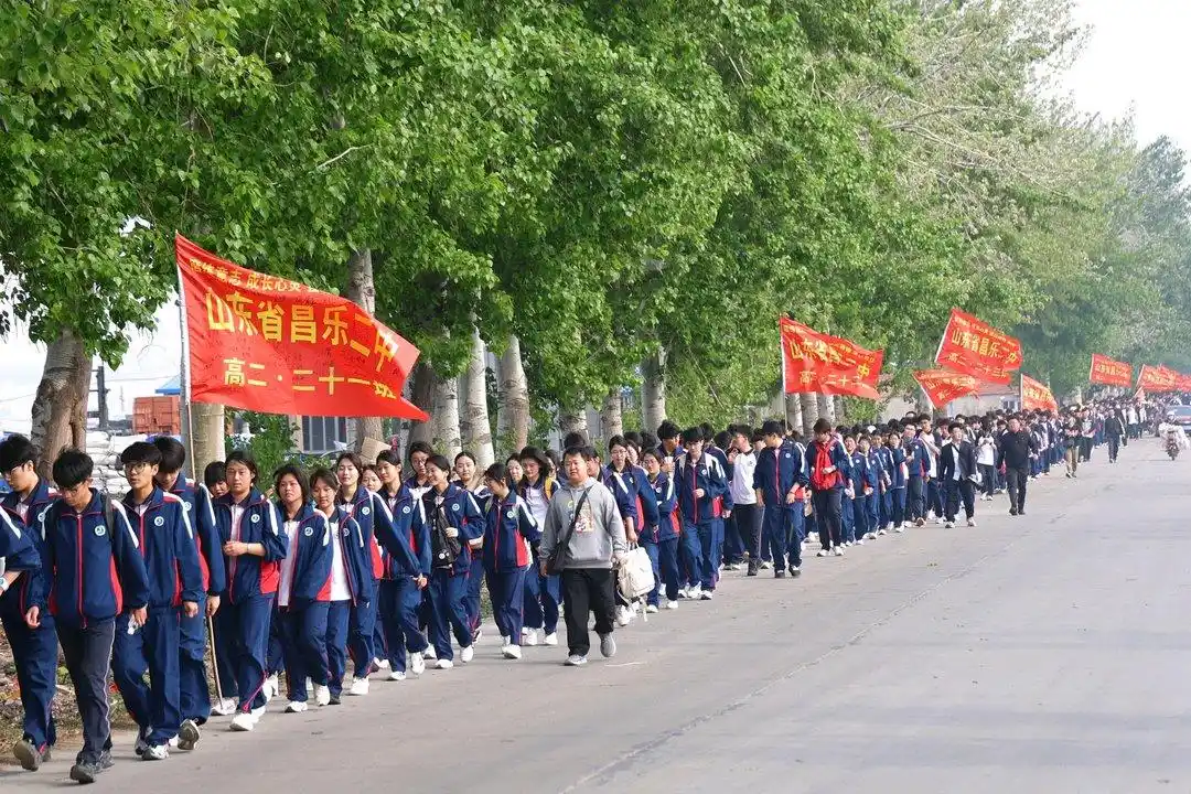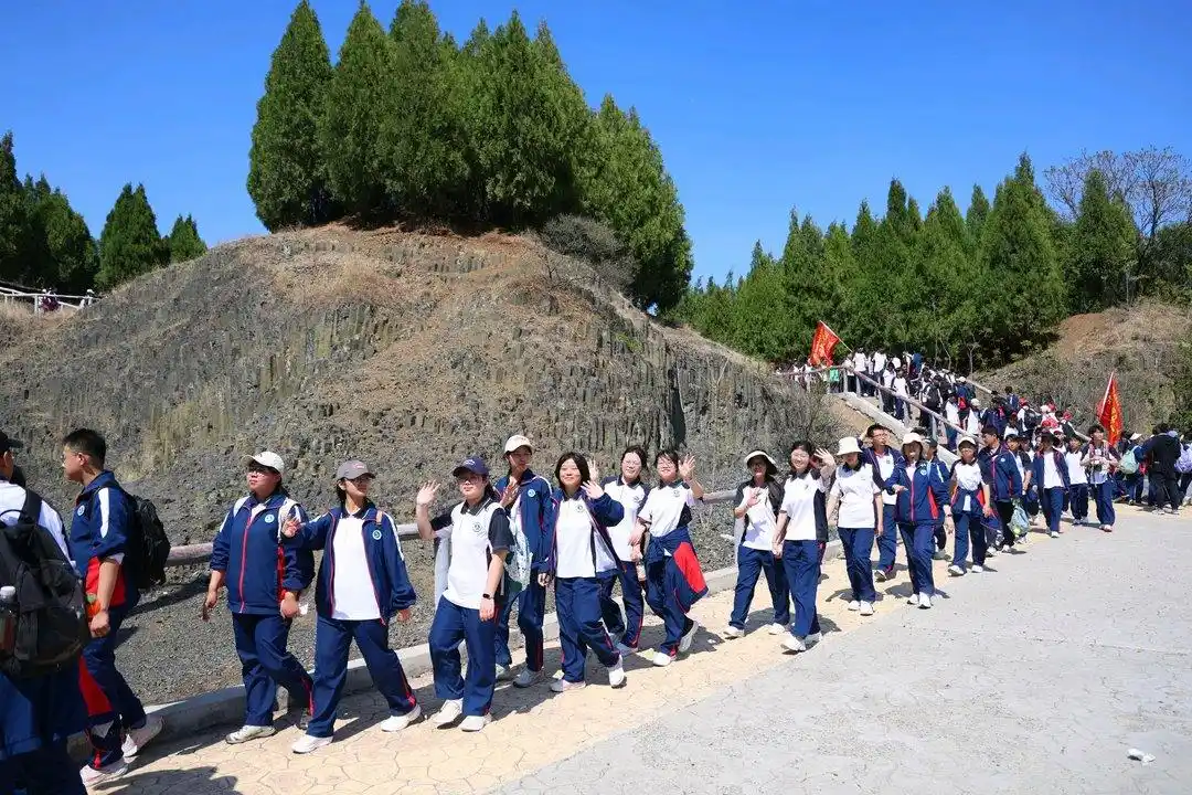 山东省昌乐二中高二年级开启了一场以“磨炼意志,成长心灵,强壮精神,承担责任”为主题的远足拉练,徒步前往数十公里外的昌乐火山国家地质公园,这也是该校连续21年开展远足思政实践。