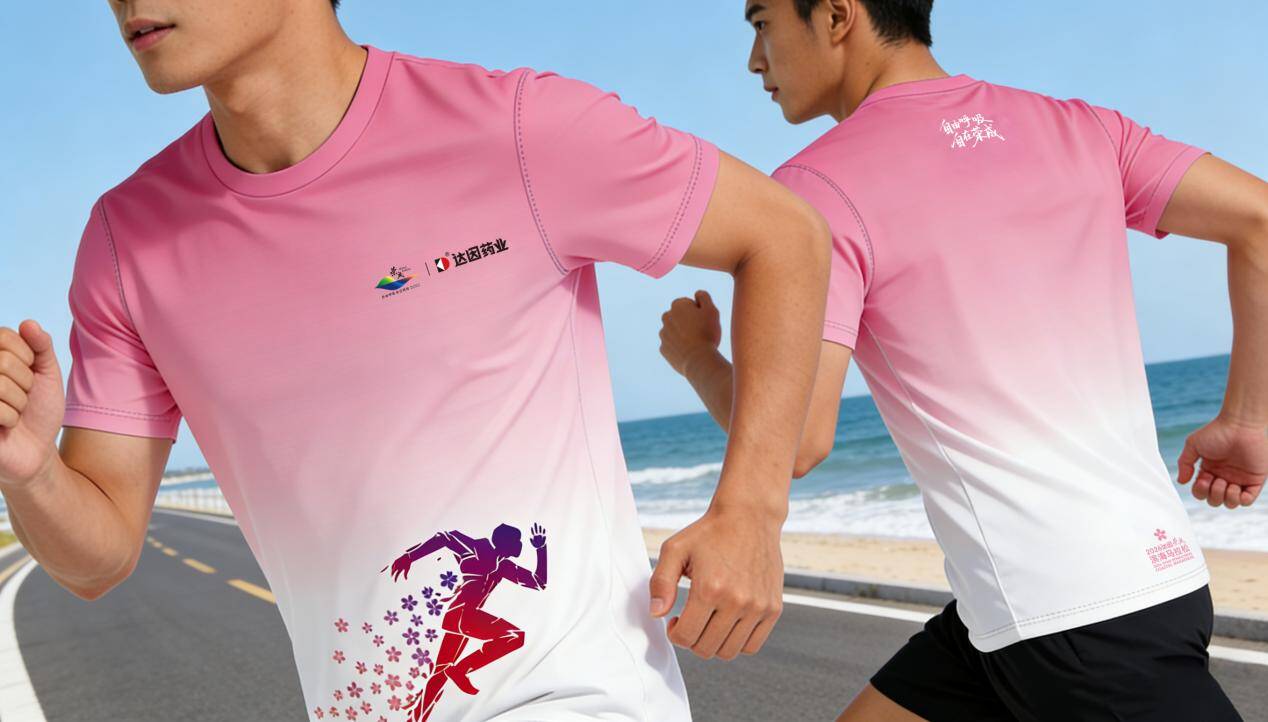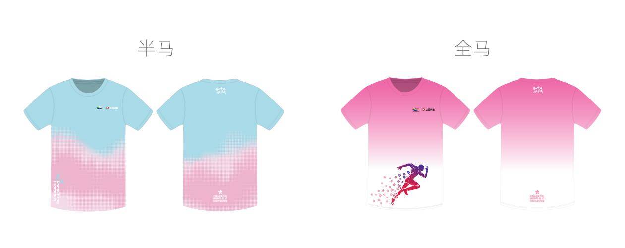 全程马拉松参赛服采用从玫粉到纯白渐变设计,以热烈饱满的玫粉色为主调,既延续樱花元素的浪漫,更以高饱和度色彩凸显全马42.195公里的挑战与荣耀;渐变过渡自然,既保留春日氛围感,又传递跑者突破极限的热血与激情,彰显全马选手的专属荣誉感。