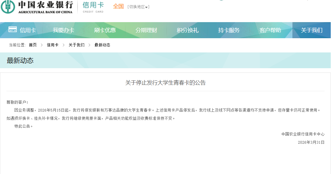 近期,多家银行接连发布公告,宣布停止发行部分信用卡产品,涉及国有大行、股份制银行及地方银行,停发产品以联名信用卡为主,同时涵盖部分主题信用卡。