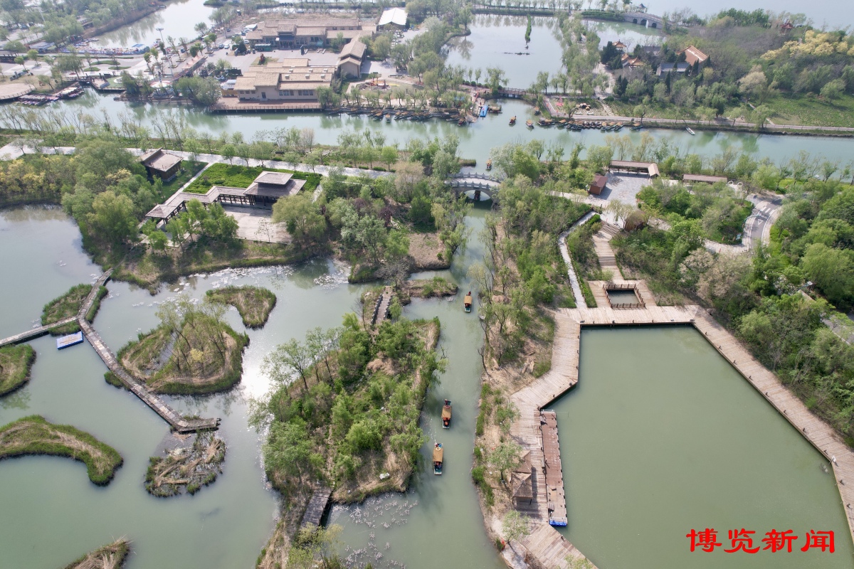 春日的马踏湖,恰似北国水乡最动人的诗行。湖水澄澈,宛如一条碧绿的绸带,在湿地间蜿蜒铺展。春风拂过,柔波轻漾,摇橹船载着游人缓缓穿行,两岸芦苇新蕊初绽,风过处沙沙作响,仿佛在低语春天的秘密。