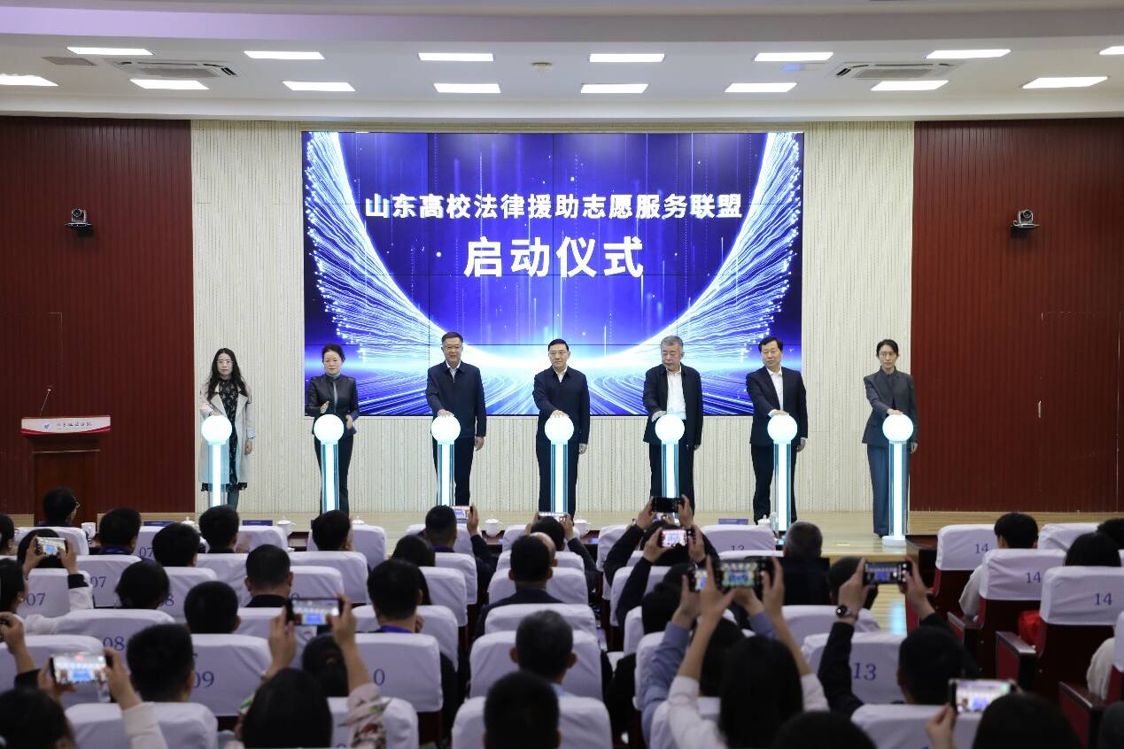 联盟在山东省司法厅指导下,由山东政法学院牵头,省内9所高校联合发起成立。会上,省教育厅、省司法厅、团省委、省妇联、省残联、省法律援助中心及山东政法学院代表共同点亮启动仪式大屏,宣告山东高校法律援助志愿服务联盟正式成立。联盟的成立,既是完善我省公共法律服务供给、延伸法律援助服务触角的重要举措,也是落实立德树人根本任务、创新法治人才培养模式的关键抓手。