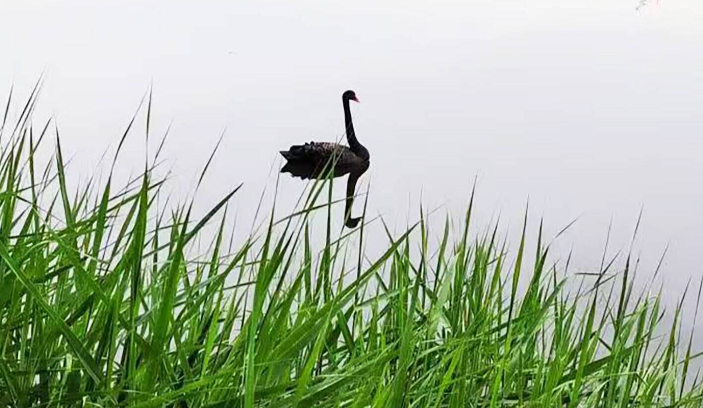 今年4月21日清晨,昌乐西湖公园湖面出现一只黑天鹅,时而低首饮水,时而游弋水面,优雅从容的姿态为春日湖光水色增添了灵动气息。