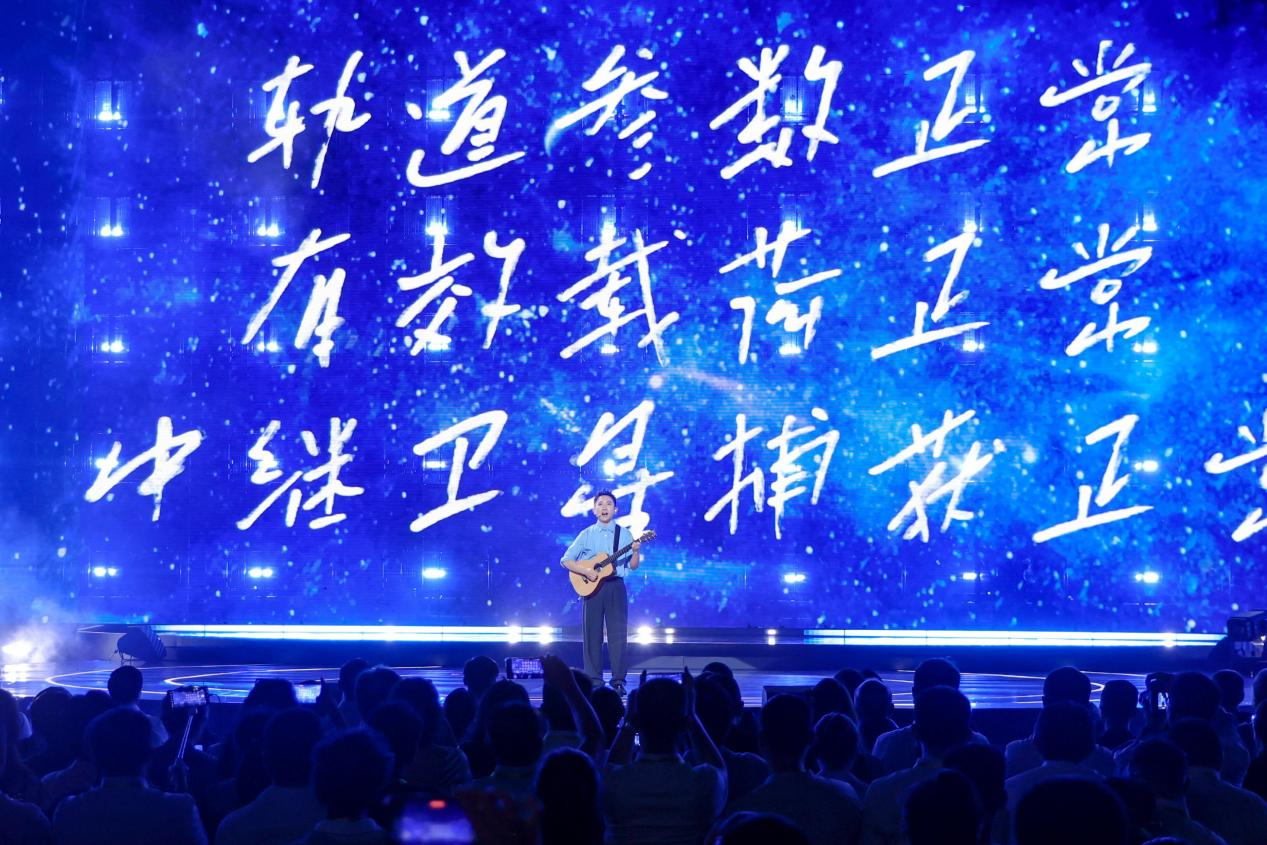 与这份硬核而又唯美的中式浪漫交相辉映的,是文艺之光点亮的航天之魂。音乐人王搏为此次盛典专门创作航天主题歌曲《向上向未来》,周笔畅的《摘星》、梁咏琪的《归程》与《花火》、胡夏的《船向》、孙楠的《此致》与《生生不息》……华语乐坛的实力唱将们倾情献唱,用歌声串联起一代代航天人“以身许国”的赤诚与向往星辰的热望,为这场宏大的航天盛宴注入了直抵人心的柔软力量。