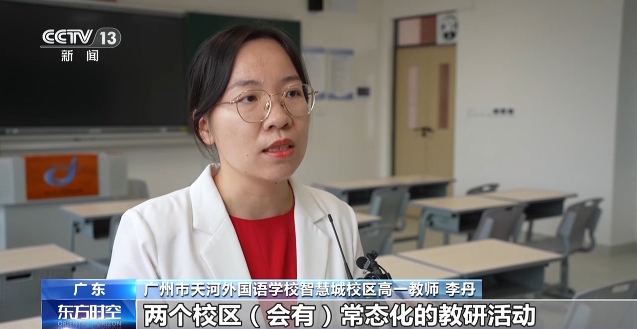 广州市天河外国语学校智慧城校区高一教师 李丹:两个校区会有常态化的教研活动,每周都会进行集体备课,对于重点课型会去打磨。