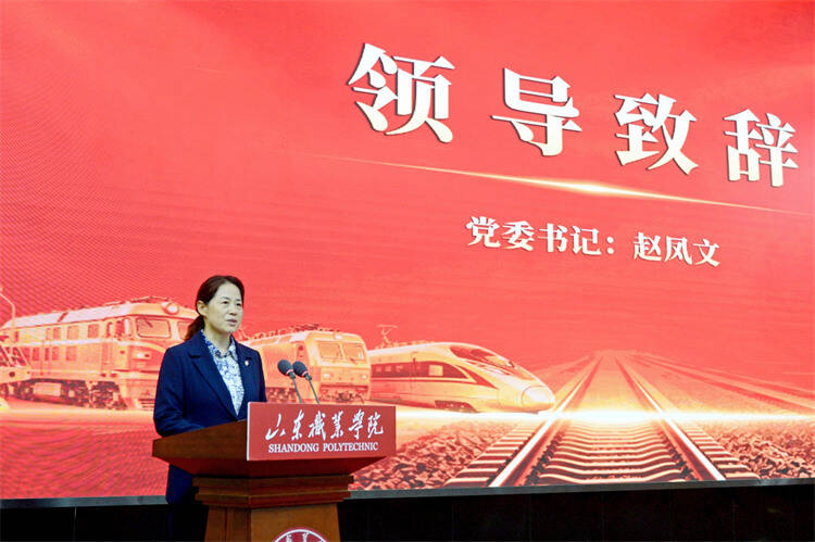 王新春、徐志平、赵凤文、郭培谦、郭鹏共同上台启动活动。启动仪式后,全场师生观看了由山东职业学院师生原创的话剧《詹天佑》,剧中展现的铁路报国情怀与匠心引发强烈共鸣。